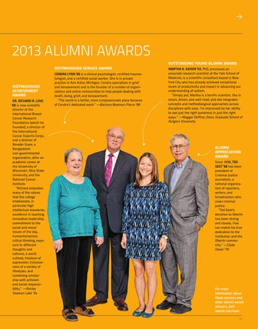 For more information about these winners and other alumni award winners, visit oberlin.edu/oam. 35