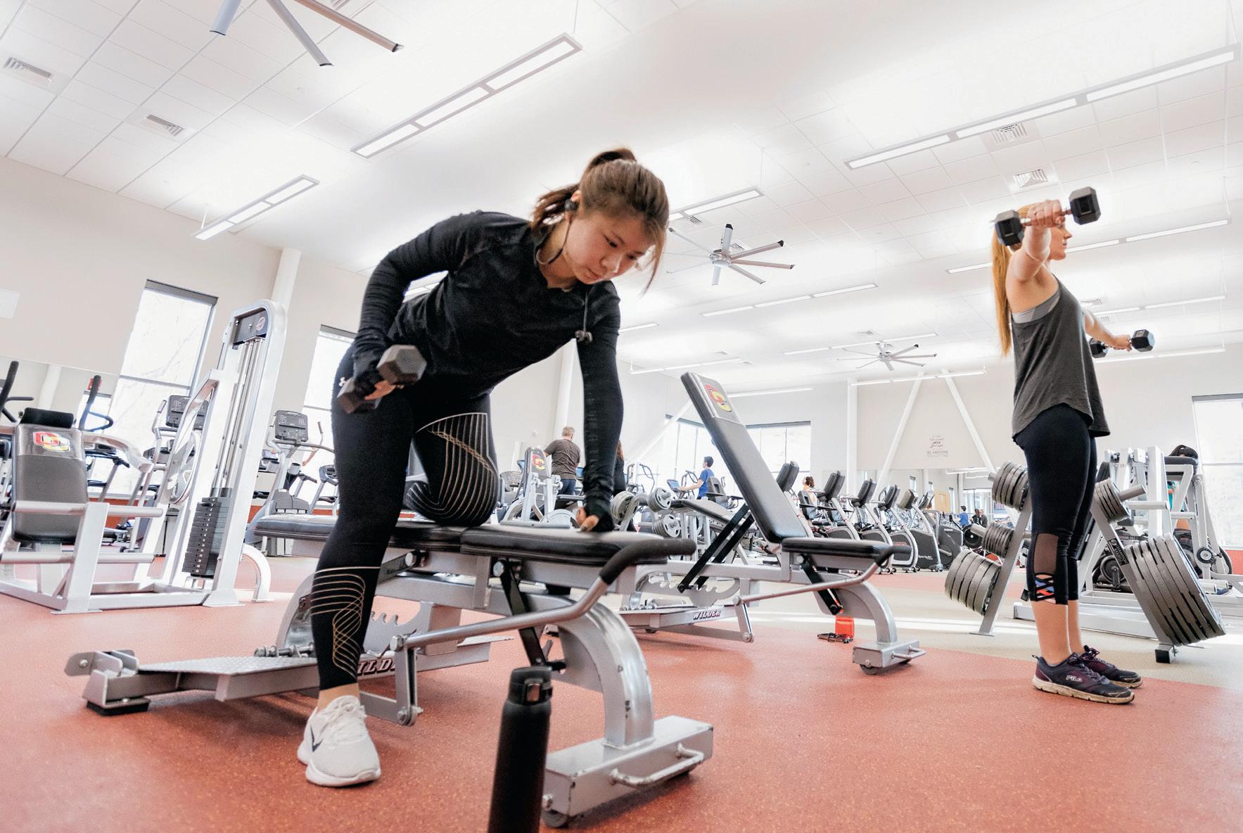 Cycling, yoga, and boxing are among two dozen walk-up group fitness classes offered each semester in Oberlin’s new Shanks Health and Wellness Center. There’s also a fitness studio that houses more than 50 stationary bikes, treadmills, elliptical machines, rowing machines, cable weight machines, and free weights.