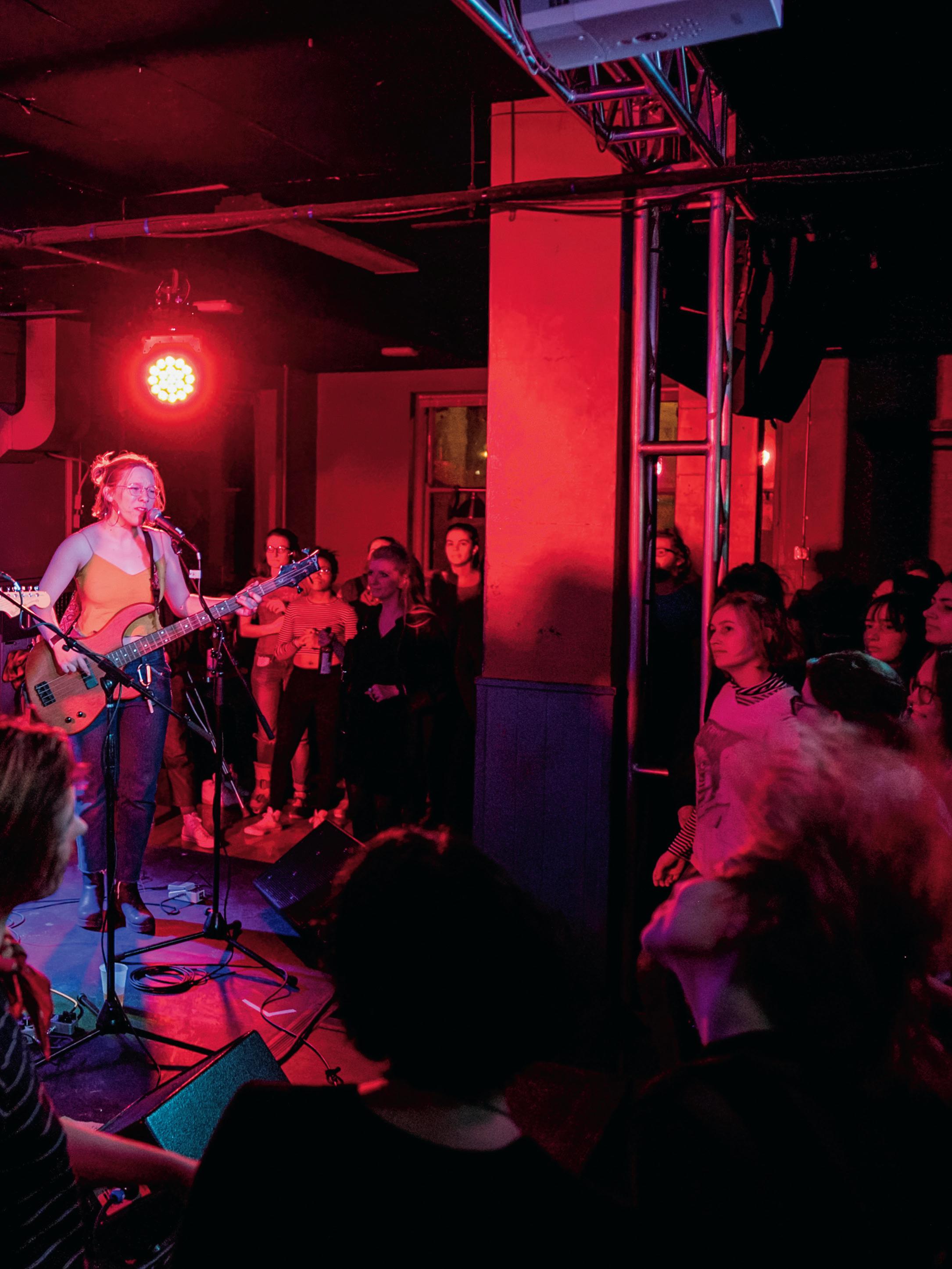 T-Rextasy, with lead singer Lyris Faron and bassist Annie Fidoten (both 2018 Oberlin grads), is one of many acts to have performed in the ’Sco, our campus nightclub.