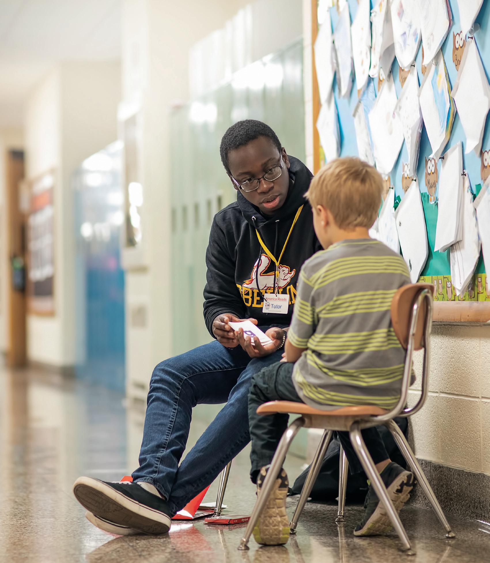 Above and left: Oberlin students perform service projects at a local retirement community and serve as America Reads tutors in the Oberlin City School District.