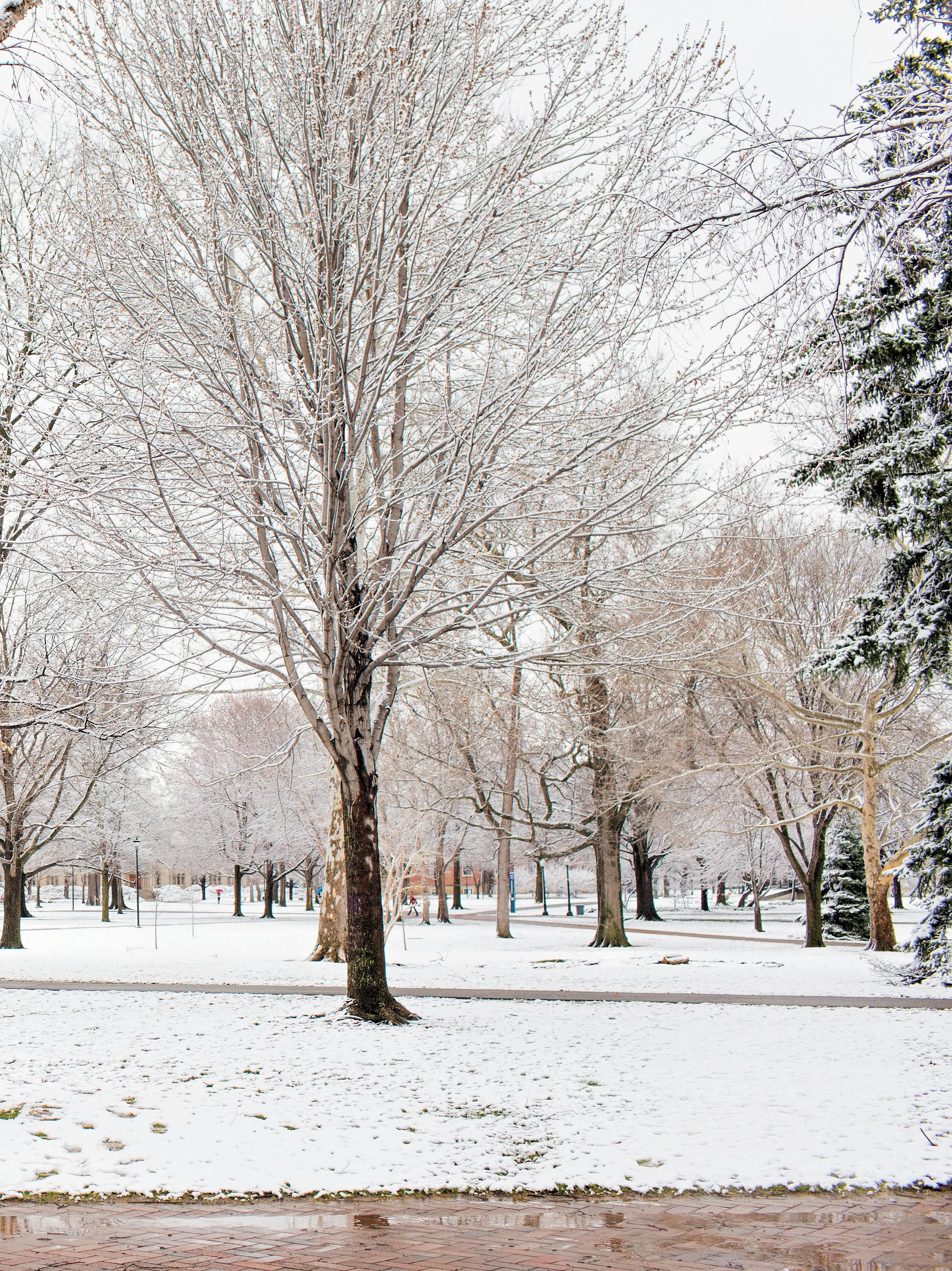 No, it doesn't snow in August! We love our four seasons—even winter, when Oberlin hosts special visit days for prospective and admitted students. This is Tappan Square, a relaxing 13-acre green space that connects the college to the city of Oberlin.
