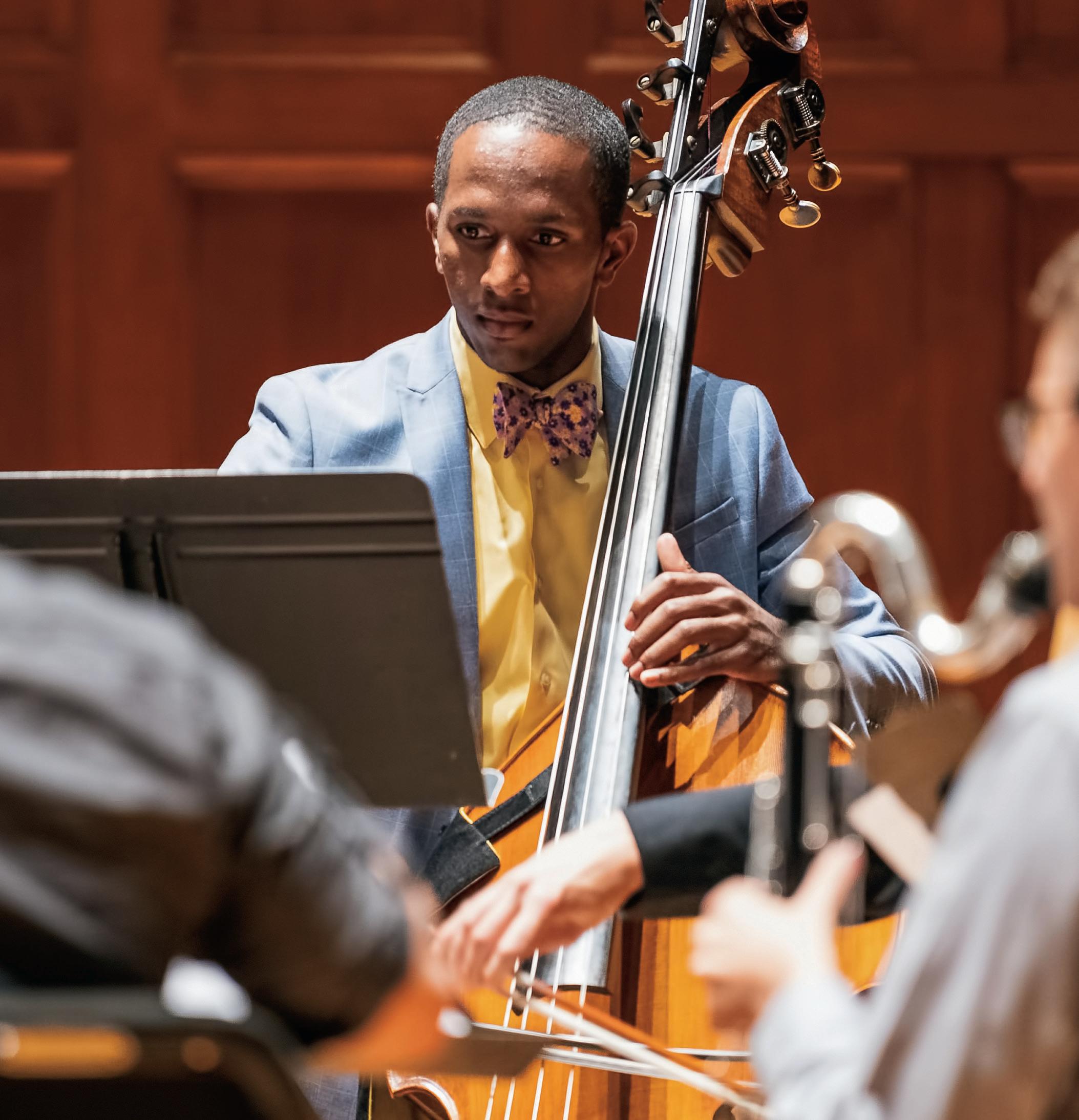 1. Robert Spano ’84, Grammy-winning music director, Aspen Music Festival and School, and music director of Fort Worth Symphony 2. Jeannette Sorrell ’90, Grammy-winning artistic director, Apollo’s Fire 3. Michael Morgan ’79, longtime music director, Oakland Symphony 4. Stanley Cowell ’62, jazz pianist and label founder 5. Kassa Overall ’06, jazz drummer, emcee, and producer 6. John Kander ’51, Tony-winning composer 7. Fei Xie ’04, principal bassoon, Minnesota Orchestra 8. George Walker ’41, Pulitzer-winning composer 9. Master Sergeant Kenneth Wolin ’89, percussionist, President’s Own Marine Band 10. Ash Fure, Guggenheim and Rome Prize-winning composer 11. Sullivan Fortner ’08, Grammywinning jazz pianist 12. Courtney Bryan ’08, MacArthur Award-winning composer 13. Rhiannon Giddens ’00, Grammy/Pulitzer/MacArthur winning musician and artistic director of Silkroad 14. Claire Chase ’01, MacArthur Grant and Avery Fisher Prize-winning flutist and entrepreneur 15. William Welter ’18, principal oboe, Chicago Symphony Orchestra 16. Denyce Graves ’85, mezzosoprano 17. Wyatt Underhill ’13, assistant concertmaster, San Francisco Symphony 18. Hannah Hammel ’15, principal flute, Detroit Symphony 19. Jennifer Koh ’97, Grammy-winning violin soloist 20. Edward Parks ’06, operatic baritone 21. Dashon Burton ’05, Grammy-winning bass-baritone 22. Elizabeth DeShong ’02, mezzosoprano 23. Daniel Okulitch ’99, bass-baritone 24. Du Yun ’01, Pulitzerwinning composer 25. Lydia Steier ’00, opera director 26. Skip Sempé ’80, harpsichordist 27. Chris Eldridge ’04, Grammy-winning guitarist, Punch Brothers 28. Will Chase ’92, actor and Broadway singer 29. Melia Tourangeau ’93, CEO, Pittsburgh Symphony