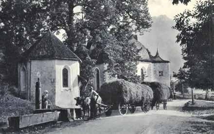 Es liegt zuoberst, bergumgeben, ein Dorf, da lässt es sich gut leben. Da scheint die Sonne hoch vom Himmel, von der Schanz ertönt Gebimmel.