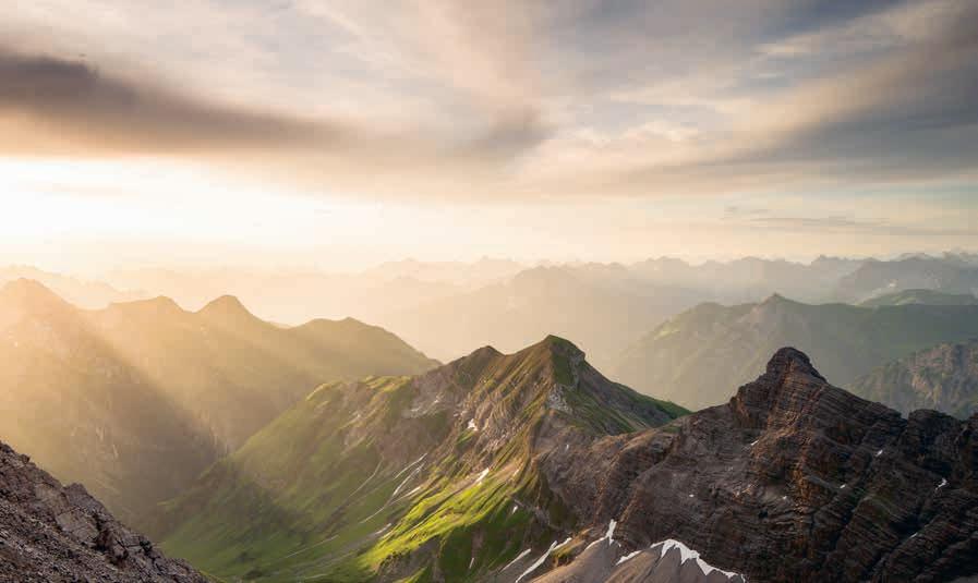 Wälder gelten als Orte der Kraft, der Ruhe und Entspannung. Und es ist ein Genuss, eine Wohltat für Körper und Seele, sich dort als Spaziergänger oder Wanderer, Naturliebhaber oder Outdoorsportler aufzuhalten. Dabei wissen wir alle: Die Bergwälder sind von größter Bedeutung, mit Einfluss auf das Klima, auf den Boden, auf die Luft, sie bieten Lebensraum für Tiere und Pflanzen, die ohne den Wald nicht existieren könnten. Und obwohl wir die Wälder kultivieren, um vor allem das Holz zu nutzen, sind sie noch so viel mehr. Denn ein intakter Bergwald bewahrt Straßen, Wege und Ansiedlungen, Stromleitungen und bewirtschaftete Flächen vor Steinschlag, niedergehenden Schlamm-, Gerölloder Schneelawinen und verhindert dadurch oftmals größere Beschädigung oder gar Zerstörung. Auch rund um den Talkessel von Oberstdorf, das zu den besonders waldreichen Gemeinden in Bayern zählt und in der glücklichen Lage ist, über einen prächtigen, überwiegend gesunden Bergmischwald zu verfügen. Schöne Wälder kann man hier gleich