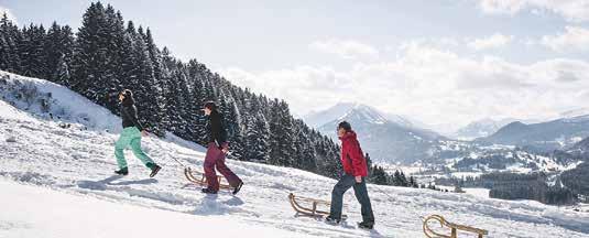 ◊ Vielfältige Skigebiete und Loipen, um sich langsam zu steigern — vom sanften Einstieg am Familienberg Söllereck oder dem Rundkurs in den Öschwiesen, bis zu den breiten Carvingpisten am Fellhorn. Und wer dann schon wagemutiger wird, der findet die sportliche Herausforderung am Nebelhorn oder wagt sich auf die Wettkampfloipen.