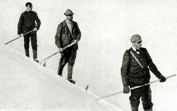 „Man möchte mit keinem König tauschen, wenn man in der Pracht der glitzernden Winterlandschaft in Windeseile dahingleitend sich frei fühlt von allen Sorgen der Welt.“ Wer sich hier so begeistert über das Skifahren äußerte, war der Kemptener Chirurg Max Madlener (1868–1951), einer der ganz aktiven Skipioniere des Allgäus. Bereits 1897 bestieg Madlener mit Skiern den Stuiben und machte ihn damit zum ersten Allgäuer Skigipfel. Kurz nach seiner winterlichen Stuiben-Tour lernte er einen Gleichgesinnten kennen, einen, der ebenfalls für das Skifahren brannte und einiges an Erfahrung mit den neuartigen langen Brettern gesammelt hatte: Fritz Heimhuber (1877 – 1963) aus Sonthofen. So sah man die beiden schließlich Ende Februar 1901 in mondheller Nacht von Oberstdorf Richtung Nebelhorn spuren. Die Männer wählten den nächtlichen Aufstieg, um die Lawinengefahr kleiner zu halten, und kamen zunächst gut voran. Doch nach der Seealpe behinderte ein altes Lawinenfeld ihren Aufstieg. Erst gegen zwei Uhr nachts erreichten sie das schützende Nebelhornhaus, das später in Edmund-Probst-Haus umbenannt wurde.