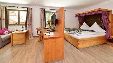 Sieschlummernherrlichin 17 Wohlfühl-Hotel-Doppelzimmern sowie in 2großzügigen Suiten mitPanorama-Whirlwannen, inkl.Bergblick,und in 3gemütlichen Ferienwohnungen über denDächern vonOberstdor f.