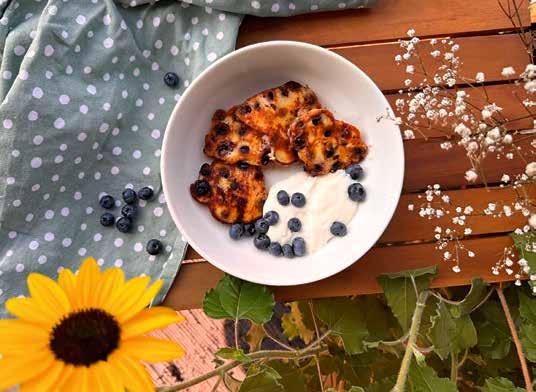 Quark, Mehl, Zucker, Eier und Salz gut vermengen. Die Heidelbeeren unterheben. In einer Pfanne ein großes Stück Butter zerlassen und den Teig in kleinen Häufchen darin platzieren. Goldbraun ausbacken und mit Vanillejogurt servieren. „An Güede!“