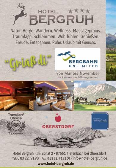Das „Oberstdorf Magazin“ ist in den Tourist-Informationen im Oberstdorf Haus, Tiefenbach und Schöllang für 1,50 € erhältlich. Oberstdorfer Gäste mit Allgäu Walser Premium Card und Einheimische erhalten das „Oberstdorf Magazin“ kostenlos. Veröffentlichung von sämtlichen Texten und Bildern, auch auszugsweise, nur mit Genehmigung des Herausgebers. Veranstaltungshinweise bzw. -preise vorbehaltlich Änderungen.