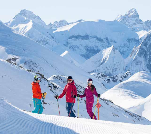 Warum also nicht das Auto stehen lassen und über die Skigleitwege ins Skiabenteuer starten? Sowohl die Kanzel wand, als auch der Ifen und das Walmendingerhorn sind über Talwege, Skiwege oder mit dem Shuttlebus einfach und komfortabel zu erreichen. Die über 23 Pistenkilome ter sind vor allem bei Familien beliebt: Übungshänge ga rantieren Skispaß für die ganze Familie.