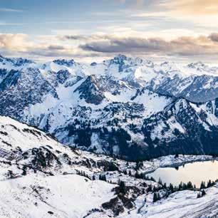 Der „Entspannte“ überrascht mit einer besonderen Perspek tive: einer Geo-Aussichtsplattform mit gläsernem Aufzug. Die Bergstation auf knapp 2000 Höhenmetern ermöglicht einen atemberaubenden Rundum-Blick auf das einmalige Panorama des 2-Länder-Ecks und lässt sogar bis ins Land der Eidgenossen blicken. Mit dem einmaligen Panorama als Aus gangspunkt starten sportliche Wintersportlerinnen und Wintersportler in ihr entspanntes Winterabenteuer und zie hen ihre Schwünge über die insgesamt 15 Pistenkilometer des Naturschneeparadieses.
