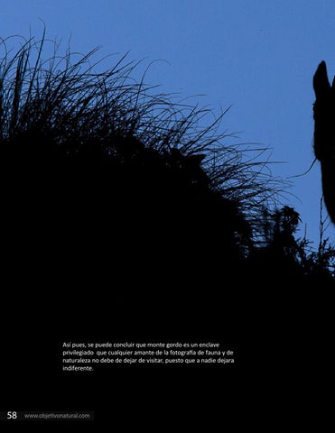 AsĂ pues, se puede concluir que monte gordo es un enclave privilegiado que cualquier amante de la fotografĂa de fauna y de naturaleza no debe de dejar de visitar, puesto que a nadie dejara indiferente.