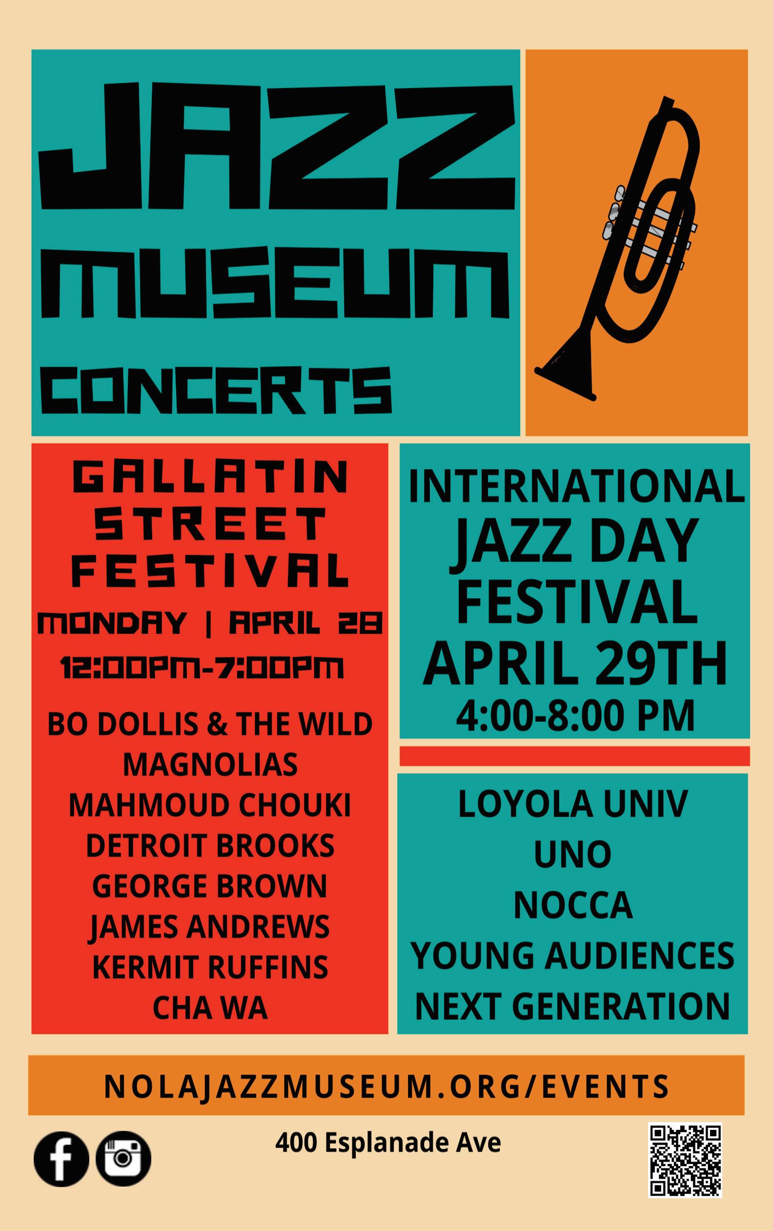 Trombone Shorty Music Academy, 4/27, KID, 4:15p : The Trombone Shorty Academy at the New Orleans Jazz & Heritage Foundation educates the next generation of musically gifted students. Students are fully immersed in the history and key influencers of New Orleans music, while preparing for