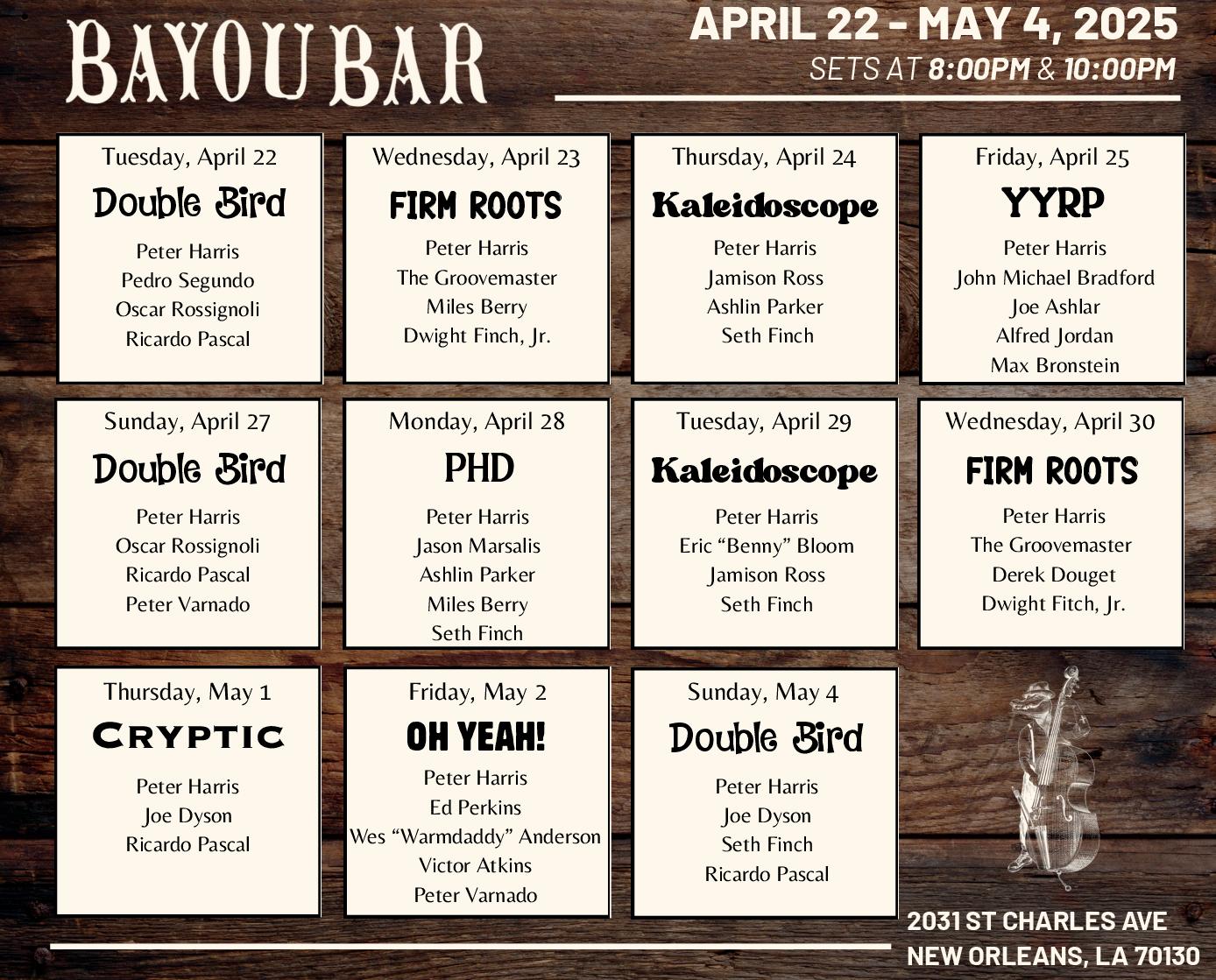 Tulane BAM Ensemble, 4/26, JAZ, 11:15a : Students from Tulane University Newcomb Department of Music, led by pianist Jesse McBride.