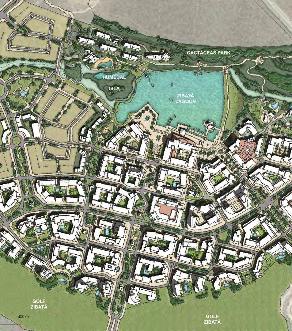 Zibata Town Centre I is planned to become the heart of New Town Zibata in Quertaro, Mexico, a place for social interaction and expression of community identity. The 100 hectare mix-use town centre will be built around an artificial lagoon and will include residential, retail office and community services. A 250 metre long retail promenade is planned along the waterfront, anchored by a hotel, supermarket and parking garages. The residential compounds are distributed around the town centre, gradually reducing in density towards the edges and the golf course. Each residential neighborhood is developed around a main plaza and early childhood centre. An indigenous cacti park will be preserved on the north side of the lagoon.