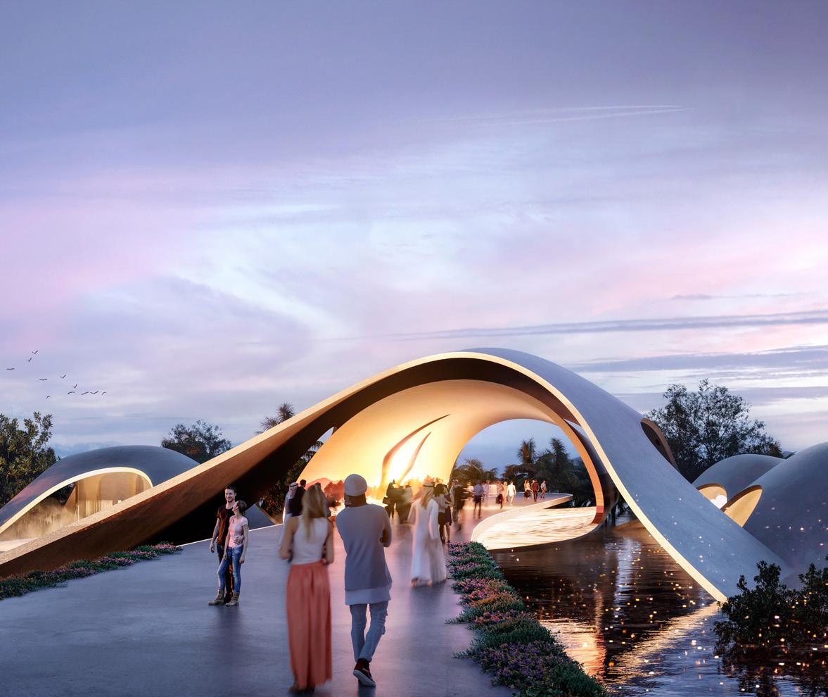 Setting sights on achieving a model for superior accommodations with minimal impact on the environment, the team led the design of the Antantara Eco Resort & Spa. Situated within the eco-friendly planned community of Mina al Arab, resort includes private rooms and villas surrounded by a lagoon and reserve lush with diverse plant life. Sustainability is at the forefront of the plan, which addresses local climate and energy consumption. The resort is a sanctuary for visitors, who encounter nature and modern comforts at the beach and outdoor swimming pools. Shared pavilions for gathering, dining, and wellness activities invite water and plant life inside. A nature discovery center provides visitors opportunities to stargaze and learn about flora and fauna native to the gulf region and makes the resort a destination unto itself.