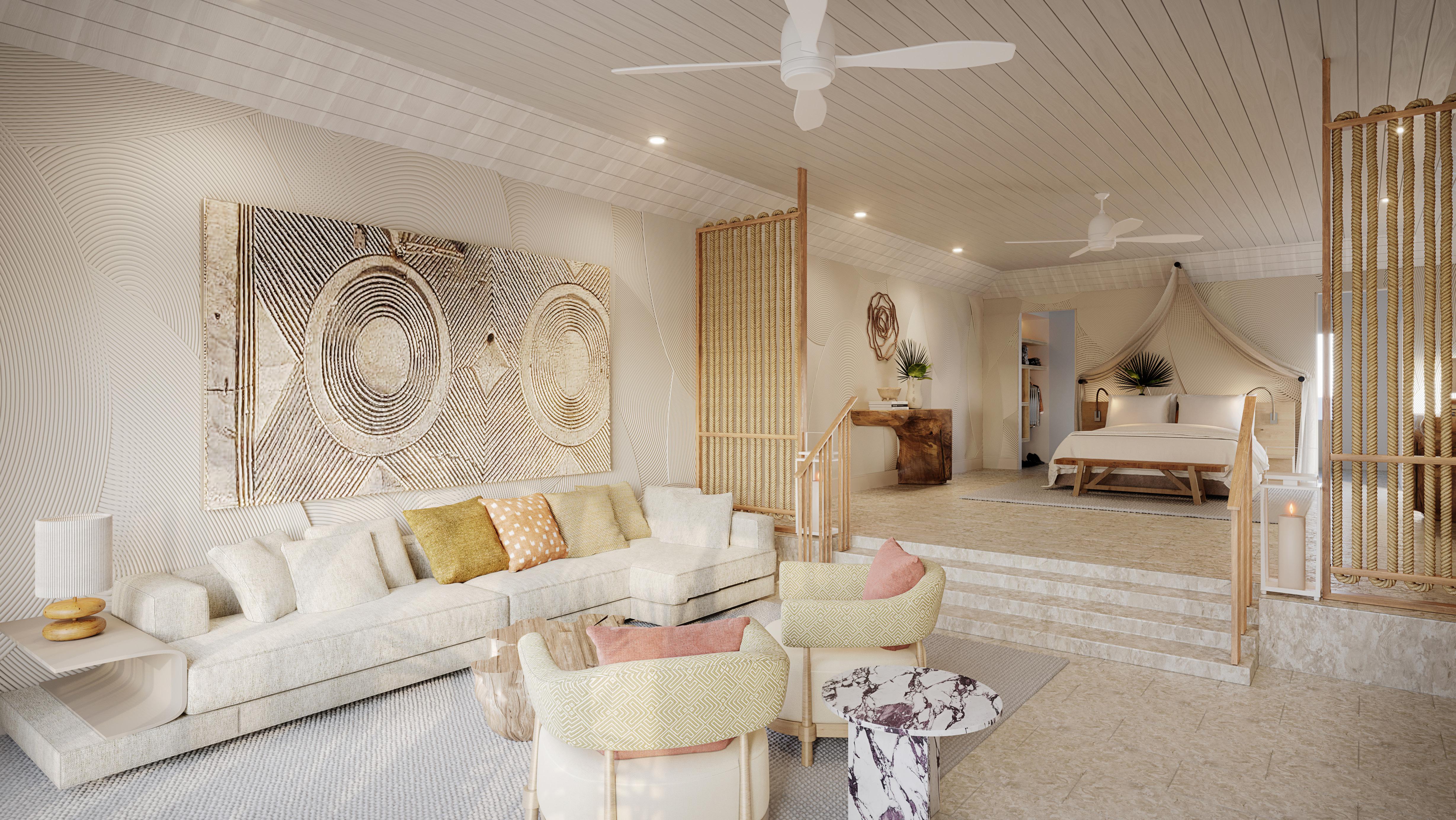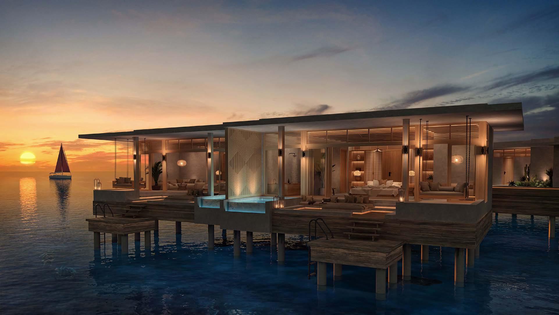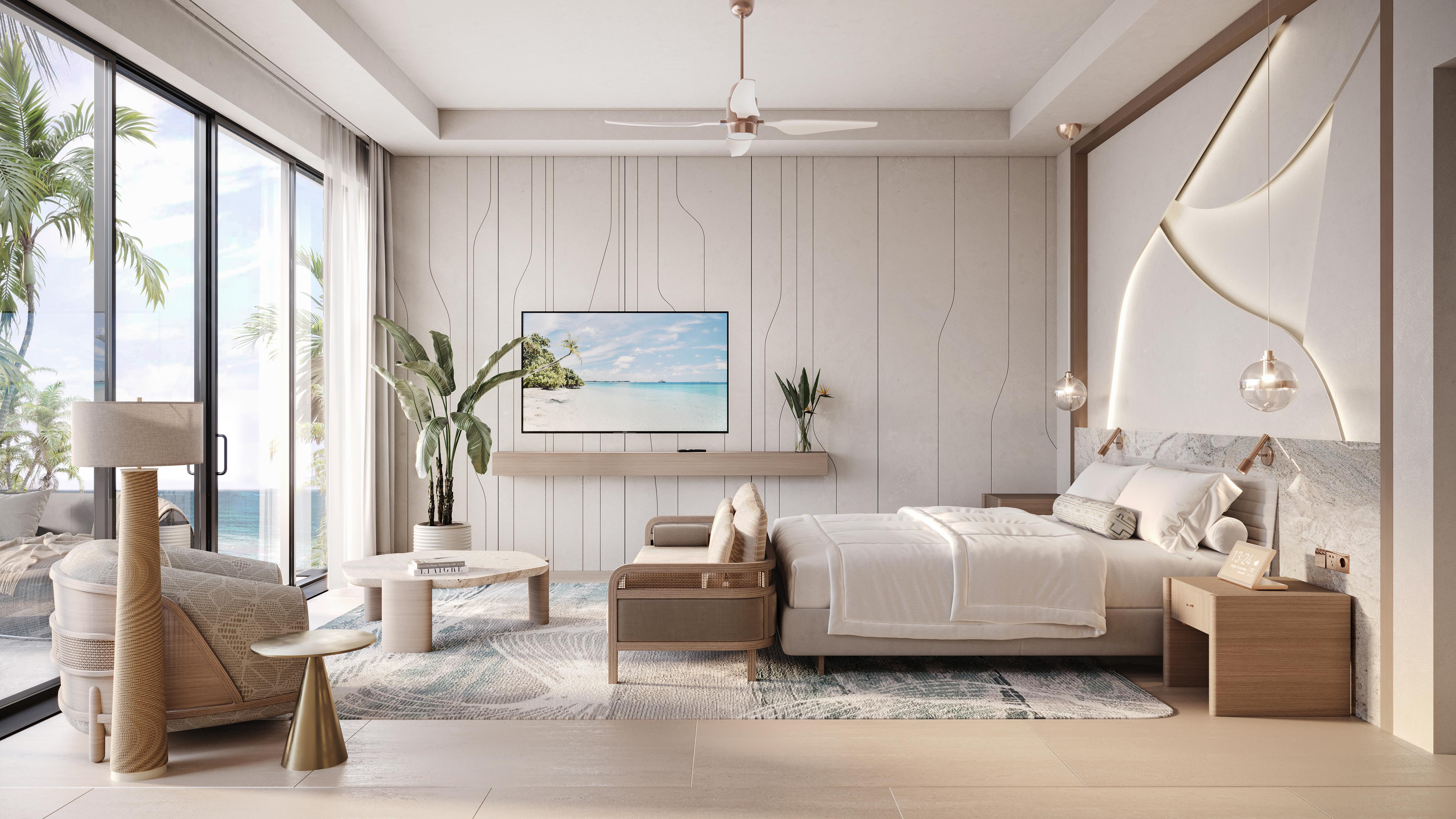 Our luxurious resort prides itself on high-end design that blends modern luxury with natural elements to create a unique, inviting experience. The grand lobby, common areas, and guest rooms offer stunning beach views, elegantly decorated with a coastal-inspired color palette and signature bedding for comfort. The outdoor spaces feature lush landscaping and designer furnishings for relaxation. The resort’s design perfectly complements the beach’s beauty, creating an unparalleled luxurious experience for guests. Seamless and intuitive connection of the programs across the site, allow for activation of the waterfront. Thoughtfully crafting open spaces and urban forms embrace the coastline allowing the preservation of the rich sea grass and coral reefs enhancing guest experience and contributing to the project's sustainability.