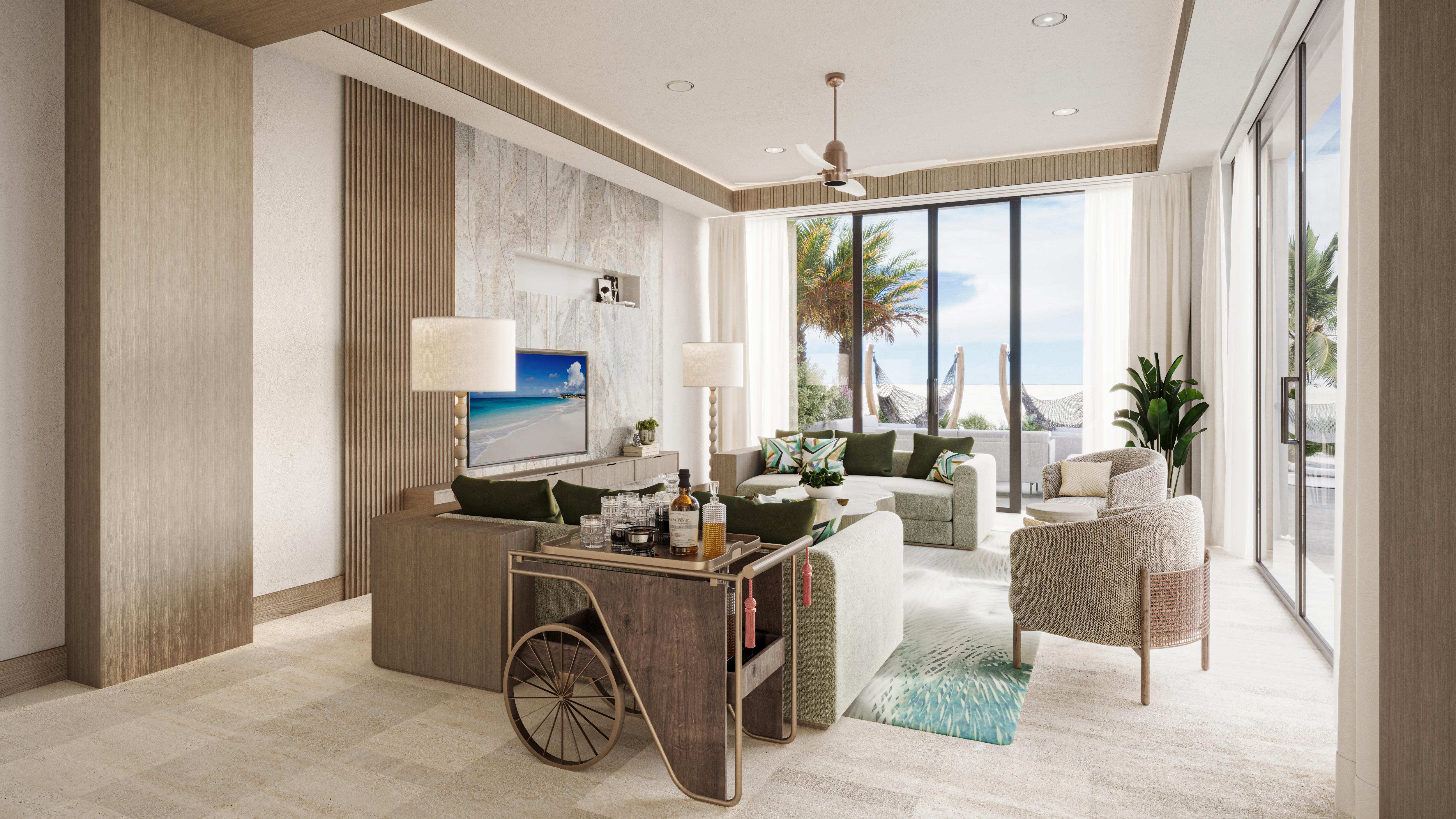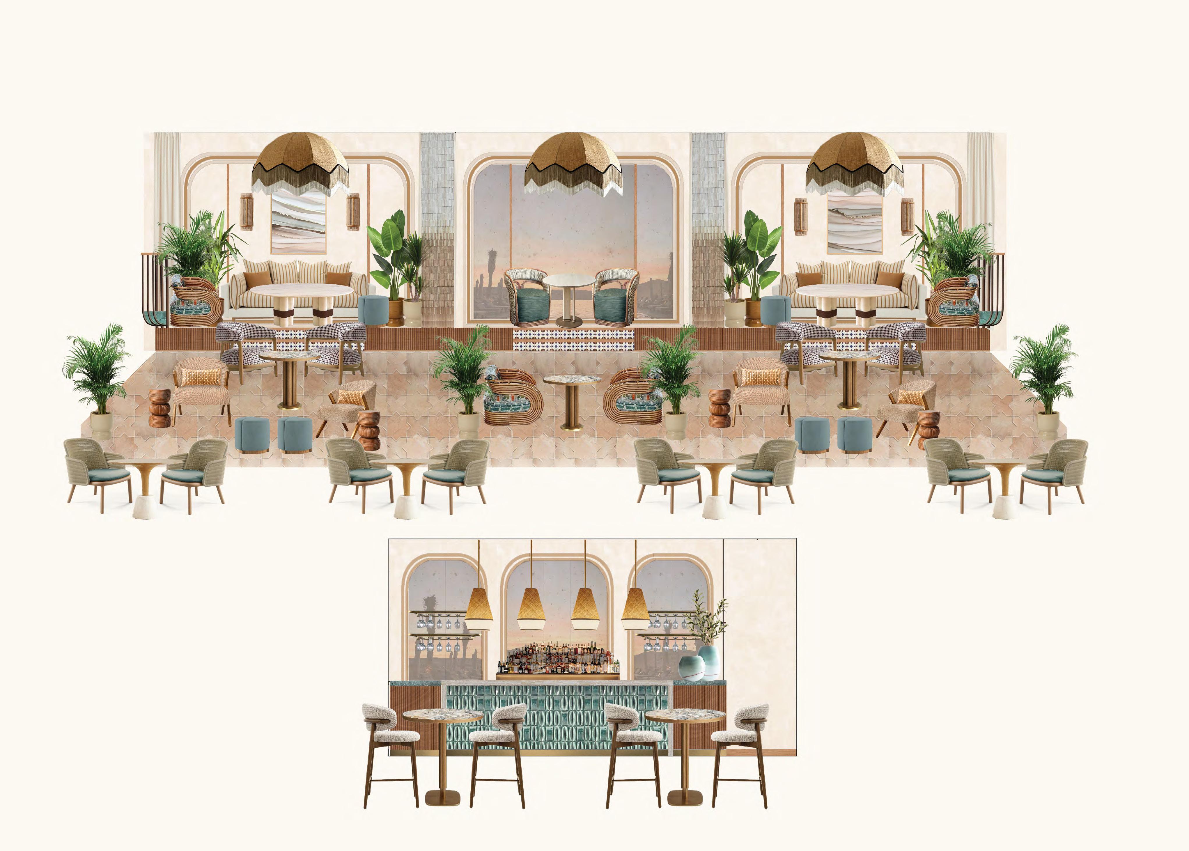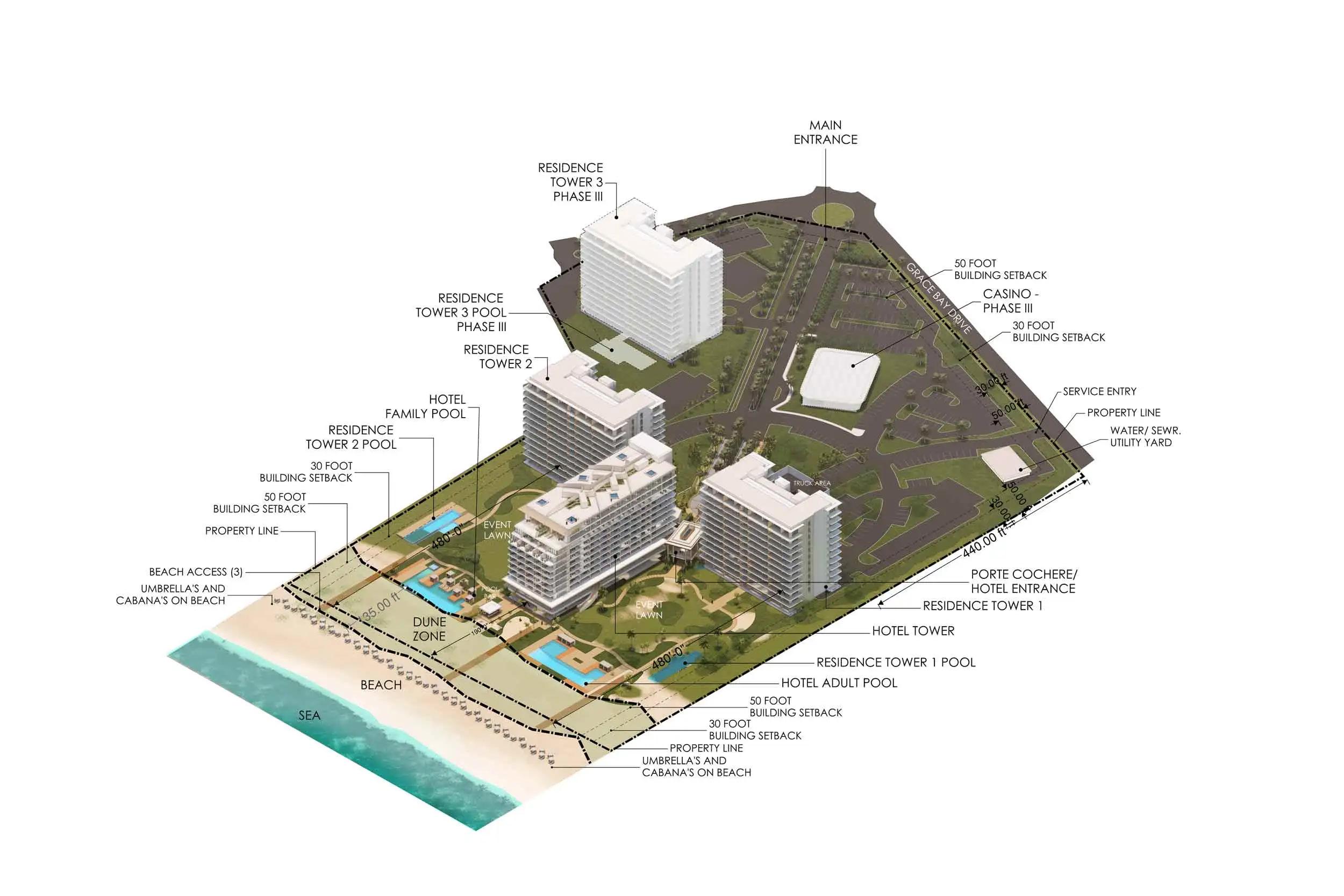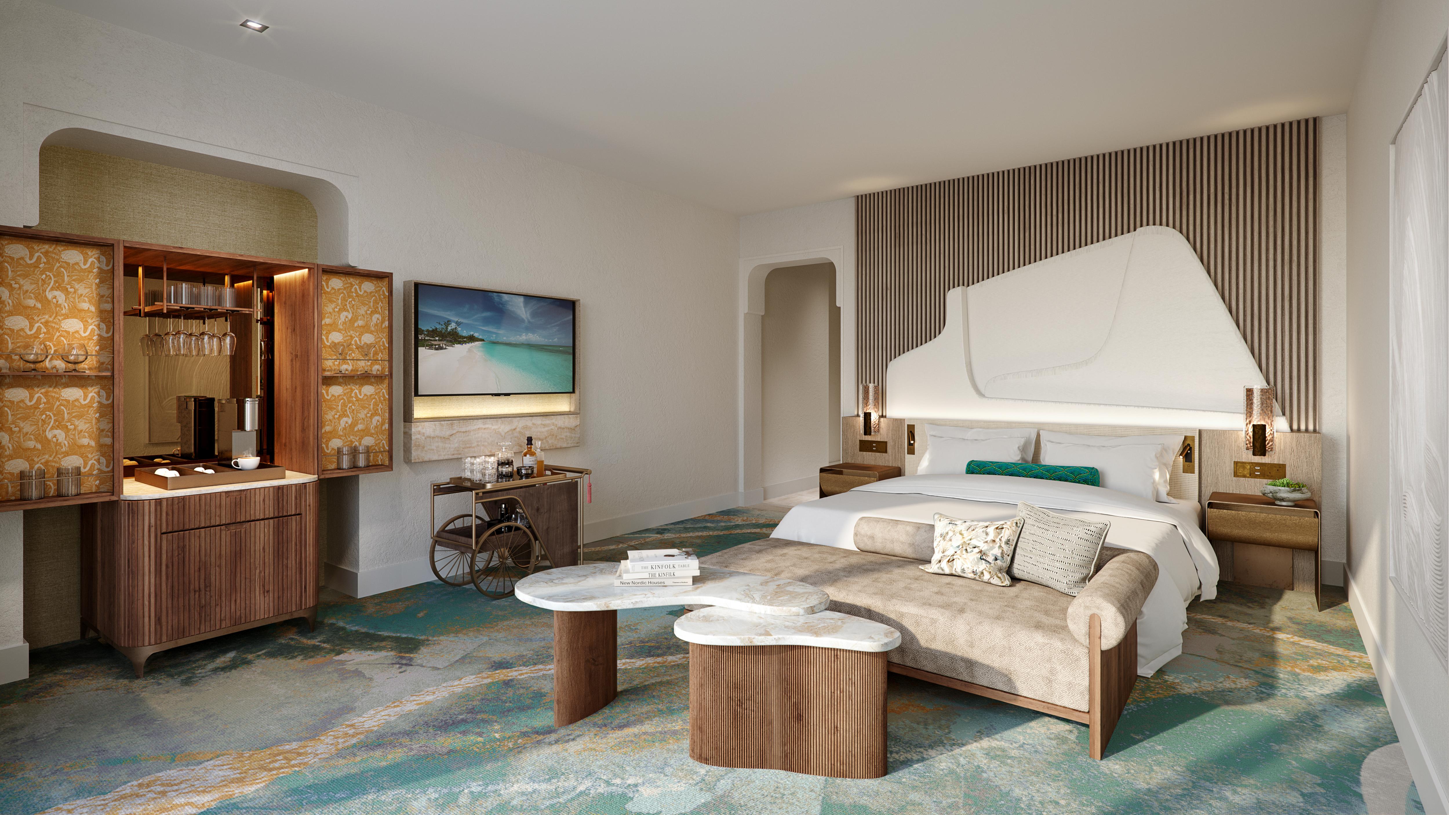 Our luxurious resort prides itself on high-end design that blends modern luxury with natural elements to create a unique, inviting experience. The grand lobby, common areas, and guest rooms offer stunning beach views, elegantly decorated with a coastal-inspired color palette and signature bedding for comfort. The outdoor spaces feature lush landscaping and designer furnishings for relaxation. The resort’s design perfectly complements the beach’s beauty, creating an unparalleled luxurious experience for guests. Seamless and intuitive connection of the programs across the site, allow for activation of the waterfront. Thoughtfully crafting open spaces and urban forms embrace the coastline allowing the preservation of the rich sea grass and coral reefs enhancing guest experience and contributing to the project's sustainability.