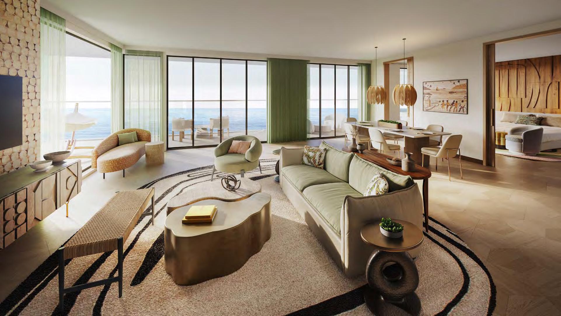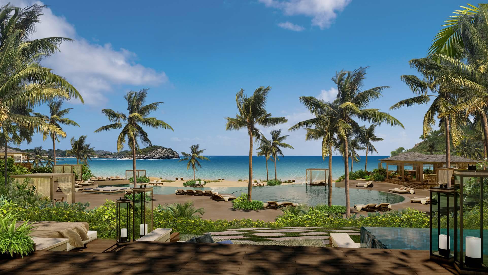 For the St. Regis Resort & Residences the tropical natural setting was the inspiration behind the design. As guests journey through the property they will find tones, shapes and textures reflecting the ocean, sand and beach foliage are employed throughout. In keeping with the affluent characteristics of the brand, the contemporary finishes and clean lines offer an experience that is both island elegant and invitingly residential. The welcoming atmosphere of the resort continues into the elegantly appointed ocean view rooms and residences. Soft, seductive, refined color palettes inspire the senses, for a seamless transition from the crystal waters to the living spaces.