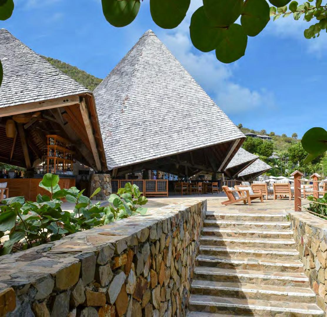 We designed Oil Nut Bay so as to firmly root it in its natural environment, seamlessly weaving together the resort, residences, rental accommodations, kids’ center, beach club, and spa. As well as creating the overall community, we also focused on luxury at the individual level. Set into steep slopes, residences have spectacular views, outdoor showers, spacious terraces, and private infinity plunge pools. Green roofs blend in with the lush surroundings and never compromise views. Planted with native species, they are sustainable by design, lowering energy consumption and passively cooling the structures.