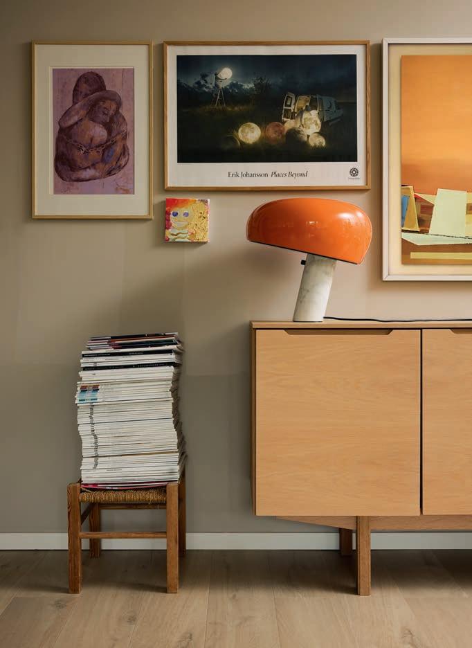 trodde var mest riktig, og som jeg malte hele rommet med, viste seg å være «feil» den også uten kontrasten fra de to andre jeg testet. Å velge farge til stuen var like kjekt. I jakten på en dus og rolig grønnfarge ble jeg gjenforent med min kjære fargevifte. Igjen ble jeg stående og stirre øynene møre og gode på de evige fargenyansene i håp om en åpenbaring. Igjen landet jeg på å teste tre farger, bare at nå så jeg umiddelbart at ingen av dem var riktige etter noen strøk på veggen, og lot det ligge. Rimelig mett på hele opplegget kjøpte jeg deretter en grønnfarge litt på magefølelsen, og den viste seg å være en innertier! Moralen her er at i fargenes grenseløse univers, er det enkle ofte det beste. Jo færre valg, desto bedre. God læring før runde to på soverommet.