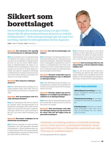 Sikkert som borettslaget Har borettslaget ditt en sikringsordning som gjør at felles skapet ikke får økonomiske problemer på grunn av uteblitte felleskostnader? – Gode sikringsordninger gjør det trygt å bo i borettslag, fastslår forvaltningsdirektør Morten Aagenæs. Tekst | Tyra T. Tronstad Foto | Nyebilder.no