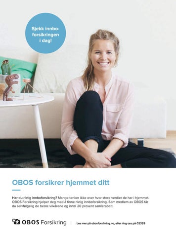 OBOS forsikrer hjemmet ditt Har du riktig innboforsikring? Mange tenker ikke over hvor store verdier de har i hjemmet. OBOS Forsikring hjelper deg med å finne riktig innboforsikring. Som medlem av OBOS får du selvfølgelig de beste vilkårene og inntil 20 prosent samlerabatt.