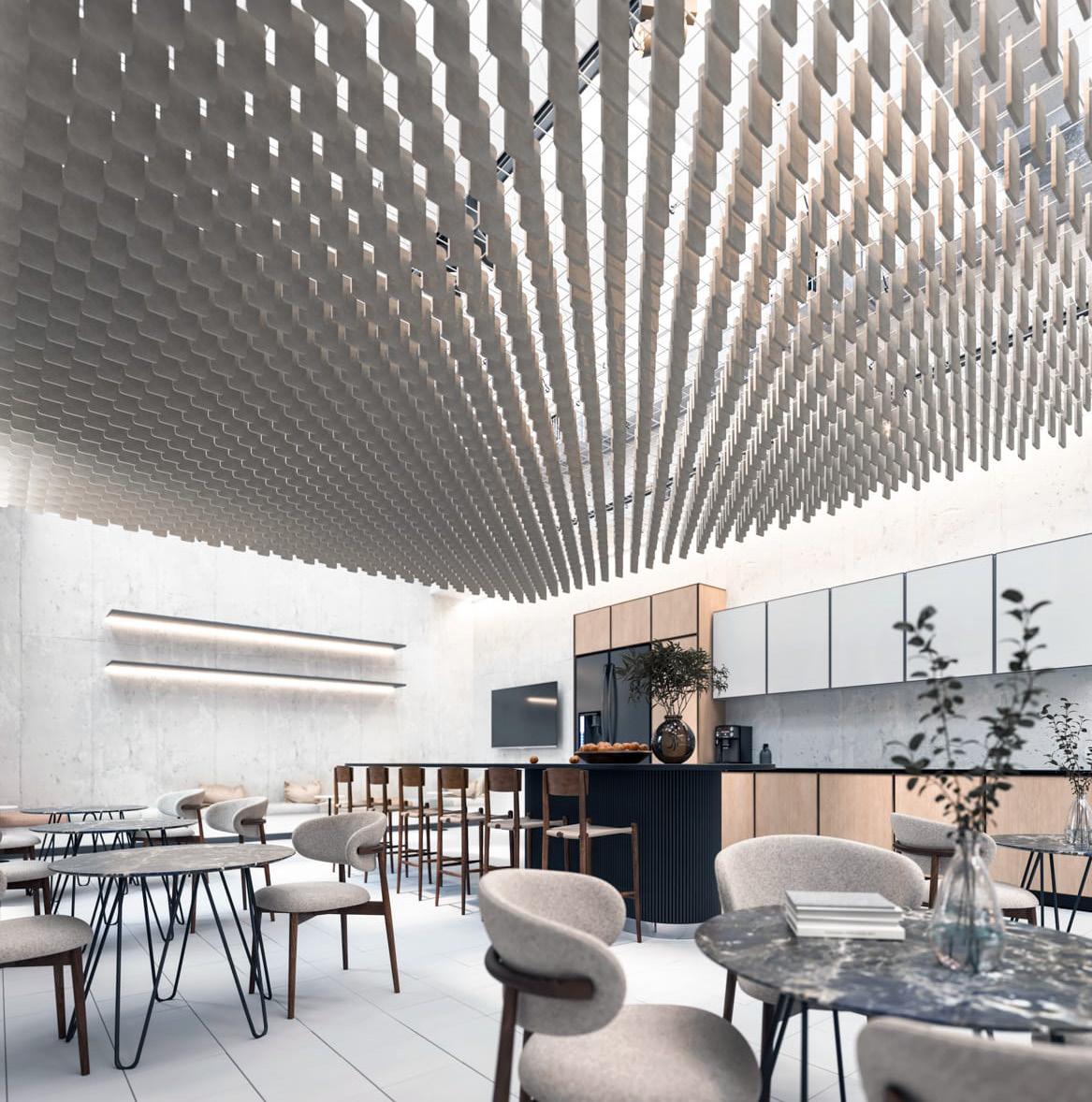 En FRSH se obtiene una experiencia sensorial gracias al patio interior y el árbol escultórico como punto focal. La iluminación es estratégica, enfatizando la textura de los materiales y resaltando los productos. La sala de zapatillas en forma de bóveda exhibe la mercancía como si fuera una galería que invita al descubrimiento. Los probadores con diseño orgánico refuerzan la estética cavernosa.