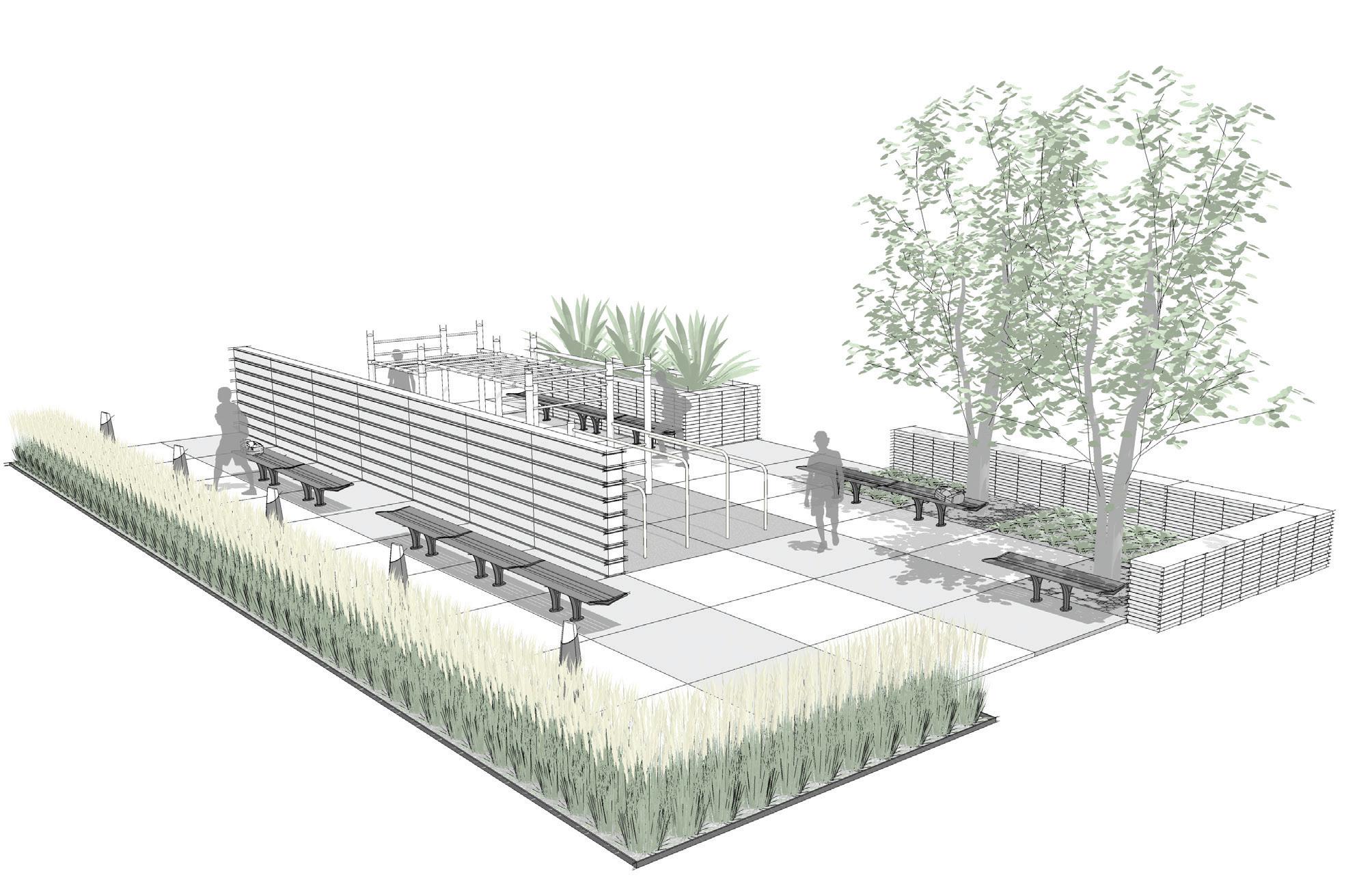 Un “toldo” de árboles que proporcione sombra natural y mejore el confort de los usuarios.