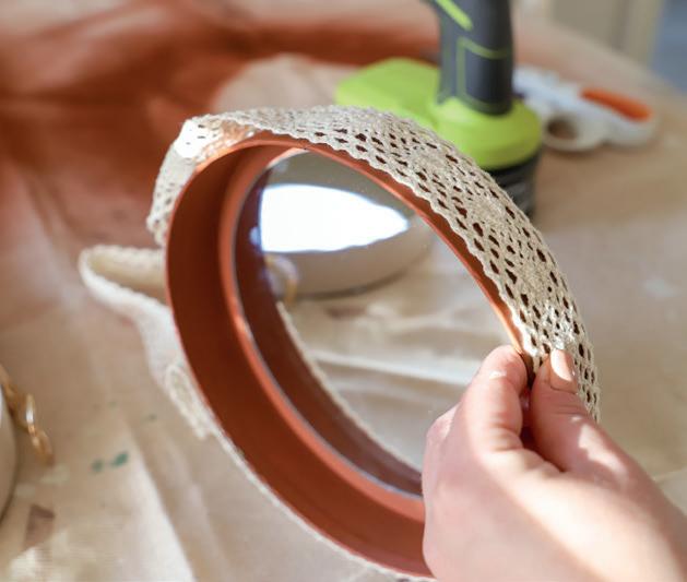• You can choose to paint or stain your tray to suit your style – best to do this before tiling. For tips on painting, check out page 201. I am doing a feminine and floral tray here, but you could use retro tiles and create a bougie tray that would look fab at a home bar or drinks corner.