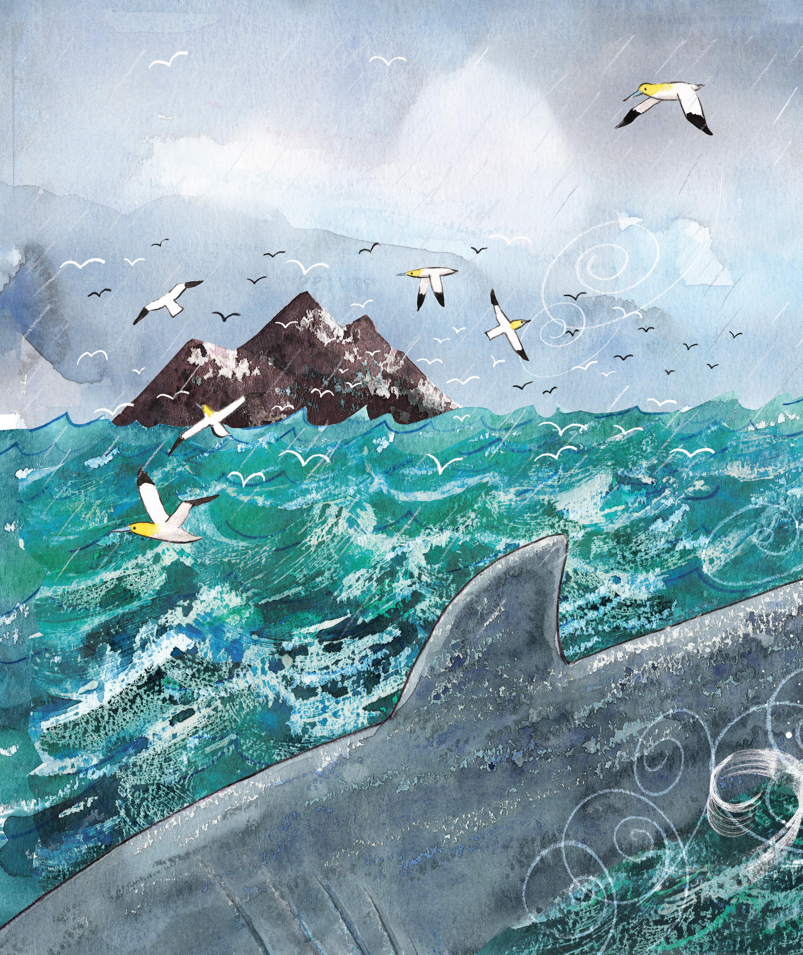 ‘I’m a basking shark,’ said the great big fish. ‘And I’ll certainly try to get you home.’