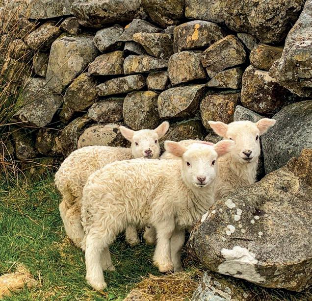 Opposite: Lamb triplets huddle in the shelter of a traditional stone wall in County Leitrim.