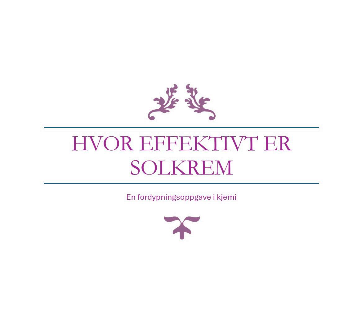 Jeg har skrevet en rapport om solkrem. Jeg tok utgangspunkt i de som har laget egen oppskrift og solkrem på sosiale medier. Jeg lagde min egen solkrem for å se om hjemmelaget solkrem beskytter mot UV-stråling sånn som den man får kjøpt på butikken. Jeg hadde to hjemmelagde solkremer og en kjøpt som jeg testet og sammenlignet med.