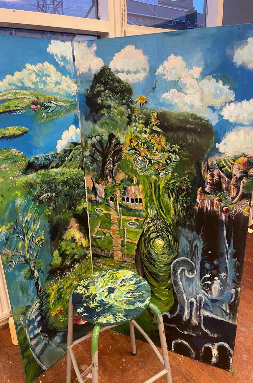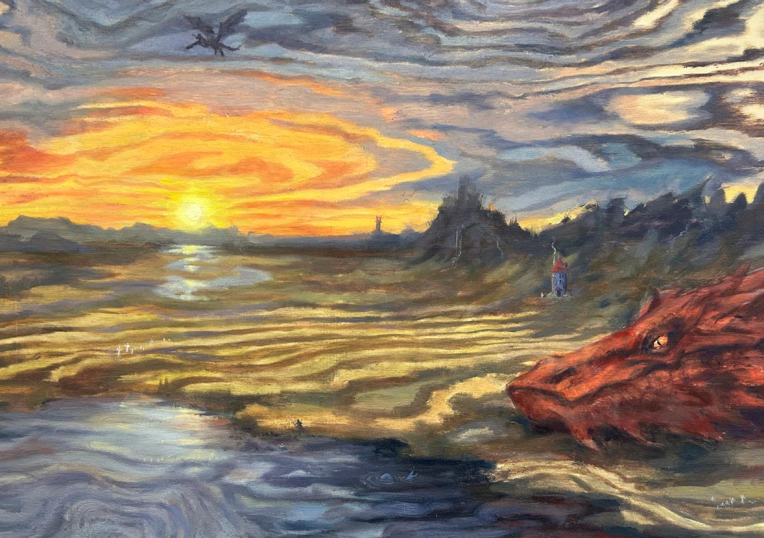 Maleriet mitt er direkte inspirert av symbolistenes evne til å skape nye og unike avbildninger av fortellinger og myter, og samtidig bruke min egen fantasi og stil.