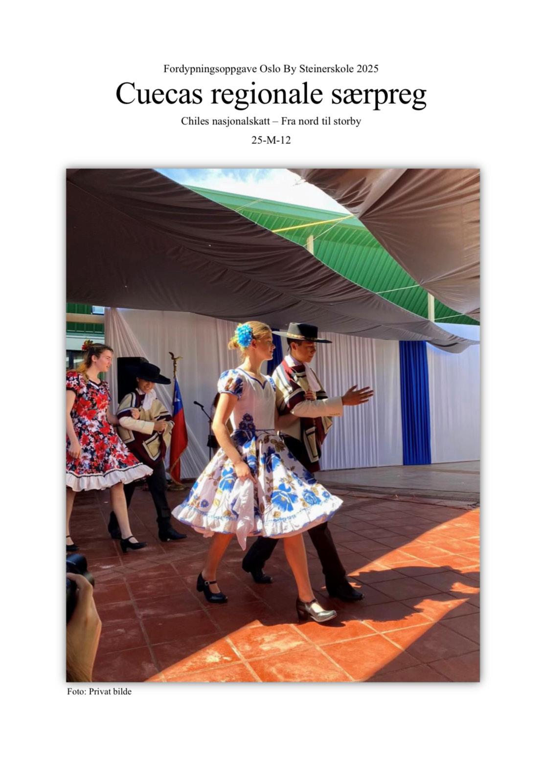 Cueca er en tradisjonell musikkstil fra Chile som akkompagnerer landets nasjonaldans. Til tross for historiske og kulturelle forskjeller har cueca utviklet seg og spredt seg ut over hele det langstrakte landet. Dette har resultert i fremveksten av flere regionale varianter, hver med sine egne særpreg og utrykk. I denne oppgaven analyserer jeg to slike varianter av cueca: cueca nortina, fra den nordlige delen av Chile, og cueca brava, som har røtter i hovedstaden Santiago og i havnebyen Valparaíso. Problemstillingen er: hva kjennetegner cueca nortina og cueca brava og hvilke faktorer har bidratt til deres ulike musikalske og kulturelle utvikling?
