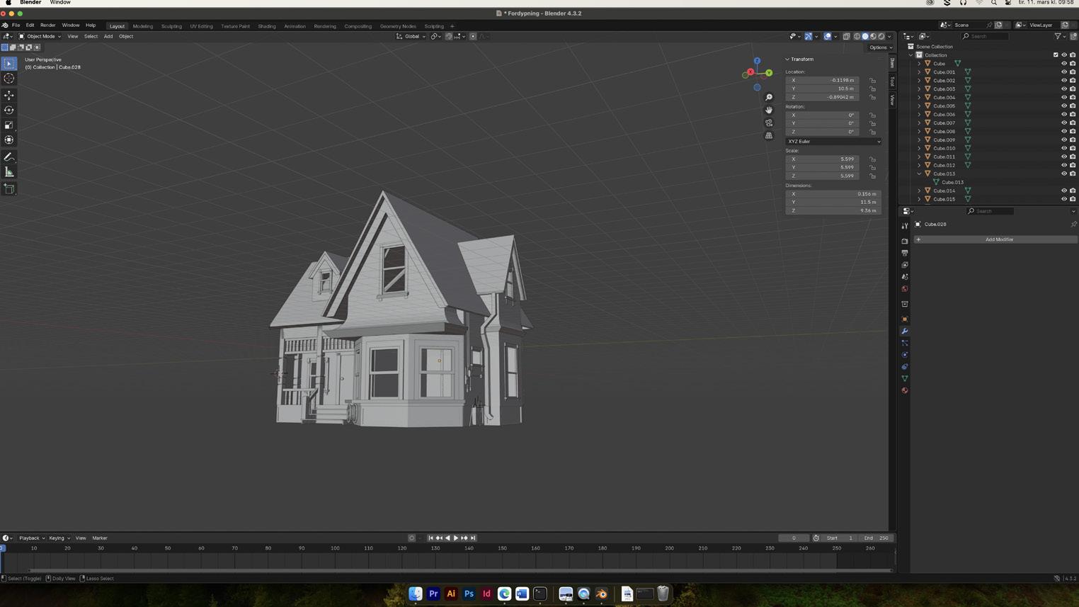 Jeg har lagd en timelaps av at jeg lager en 3d-modell av huset fra filmen «Se Opp».