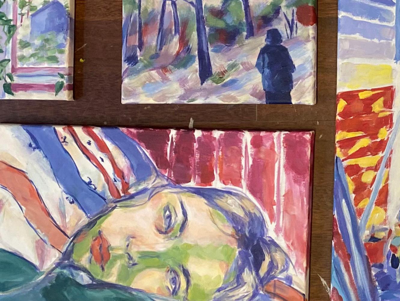Videre arbeidet jeg derfor under den praktiske oppgaven rundt fargebruken til fauvismen i mine egne malerier og mitt eget utrykk. Oppgaven min er en billedserie i akryl som reflekterer rundt følelsene mine denne vinteren.