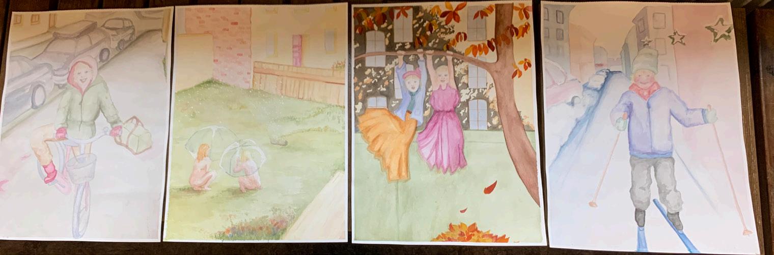 Min fordypningsoppgave handler om Elsa Beskow og hennes fremstilling av årstider i sine barnebokillustrasjoner. I min egen oppgave har jeg jobbet med å overføre Beskows barndomsidyll, men med omgivelser fra dagens Oslo.