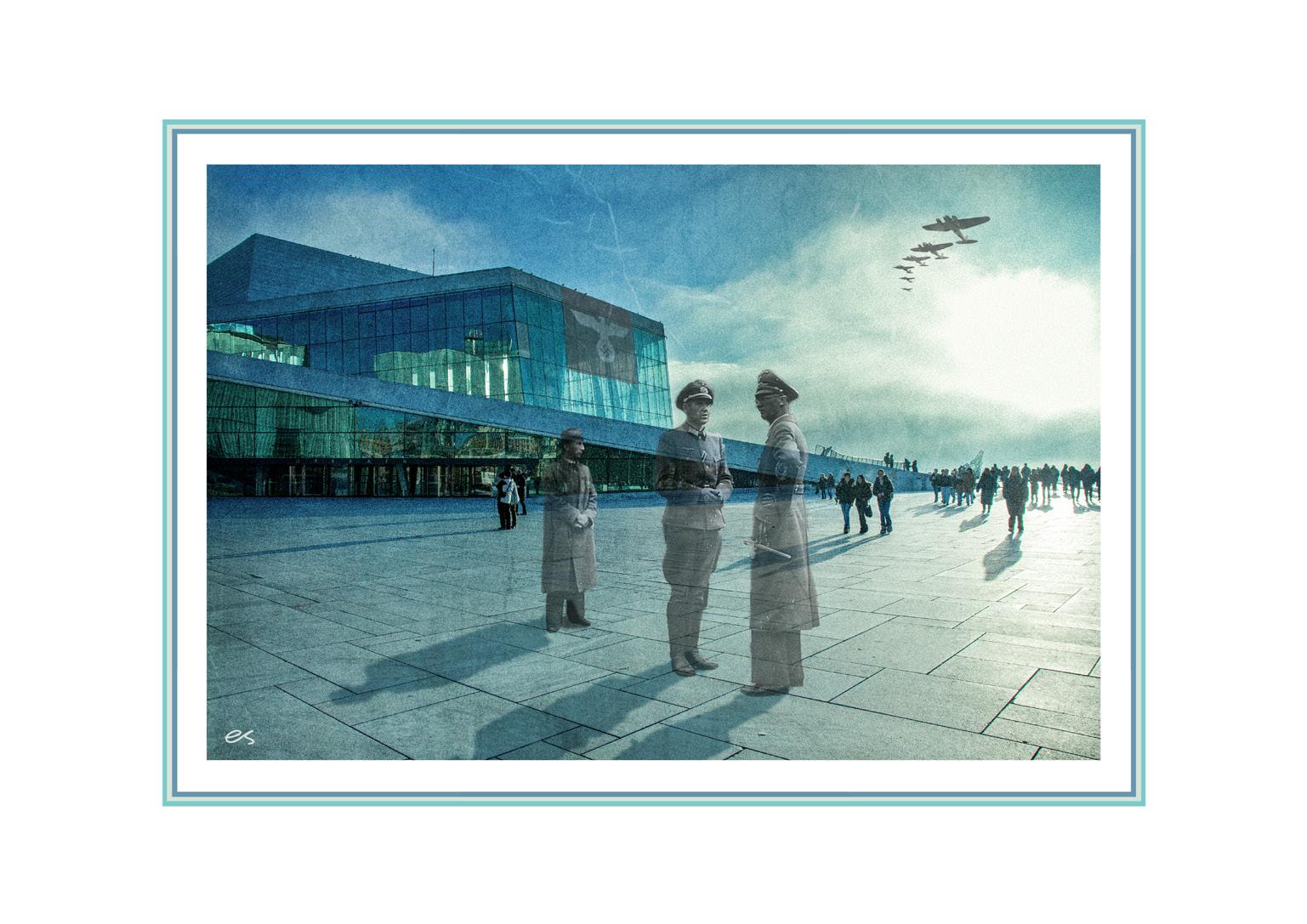 I min fordypningsoppgave har jeg tatt seks ulike bilder fra Oslo og Nesodden-området. Deretter har jeg redigert inn ulike virkemidler som soldater, krigsfly og båter i de ferdig redigerte bildene. Oppgaven er inspirert av andre verdenskrig, og hele bildeserien er i svart-hvitt for å skape en autentisk, historisk atmosfære. Gjennom redigeringen har jeg forsøkt å fremheve krigens intense og dramatiske stemning, ved bruk av krigsfartøyene og soldatene. Samtidig som jeg har bevart det moderne og realistiske.