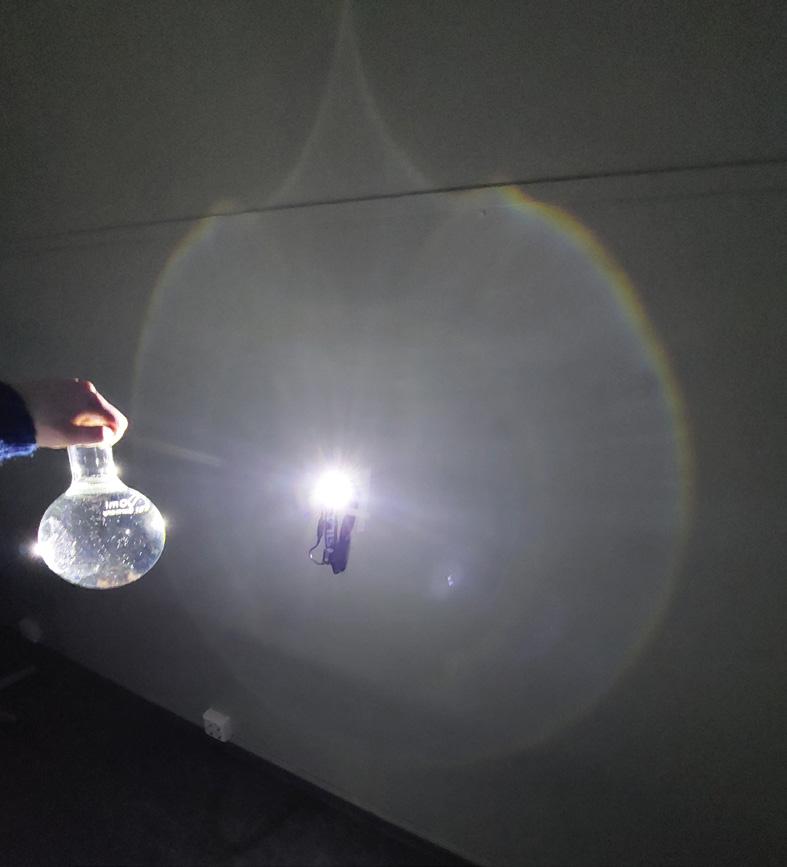 Det var en gang jeg tittet opp på himmelen og så at regnbuen skinte over landskapet da det slo meg at jeg ikke egentlig visste hvordan regnbuen oppstod. De fleste vet jo at det både må være regn og solskinn på en gang, men det var fortsatt et hav av ubesvarte spørsmål. Som for eksempel hvorfor er den kun akkurat der den er? Og hvorfor er den buet? Så da jeg skulle finne et tema til fordypningsoppgaven min, bestemte jeg meg for å ta regnbuemysteriet i egne hender. Det viste seg at regnbuen skjulte mange flere mysterier enn jeg ante. Men det viktigste funnet var at lysets farger skinner ut av vanndråpen i en kaustikk ved 42 grader. Og det er det som legger grunnlage for hele regnbuens geometri på himmelen. Det viste seg at regnbuen egentlig er en hel sirkel, men at resten av ringen vanligvis befinner seg under bakken. Men det mest overraskende funnet er at regnbuen faktisk har en ende, bare ikke der du tror. Regnbuen er lys som skinner fra vanndråpene og til øyet ditt. Som betyr at hver og en ser hver sin regnbue, og at enden av regnbuen er i øynene på den som ser. Kanskje er det en skatt i enden av regnbuen likevel?