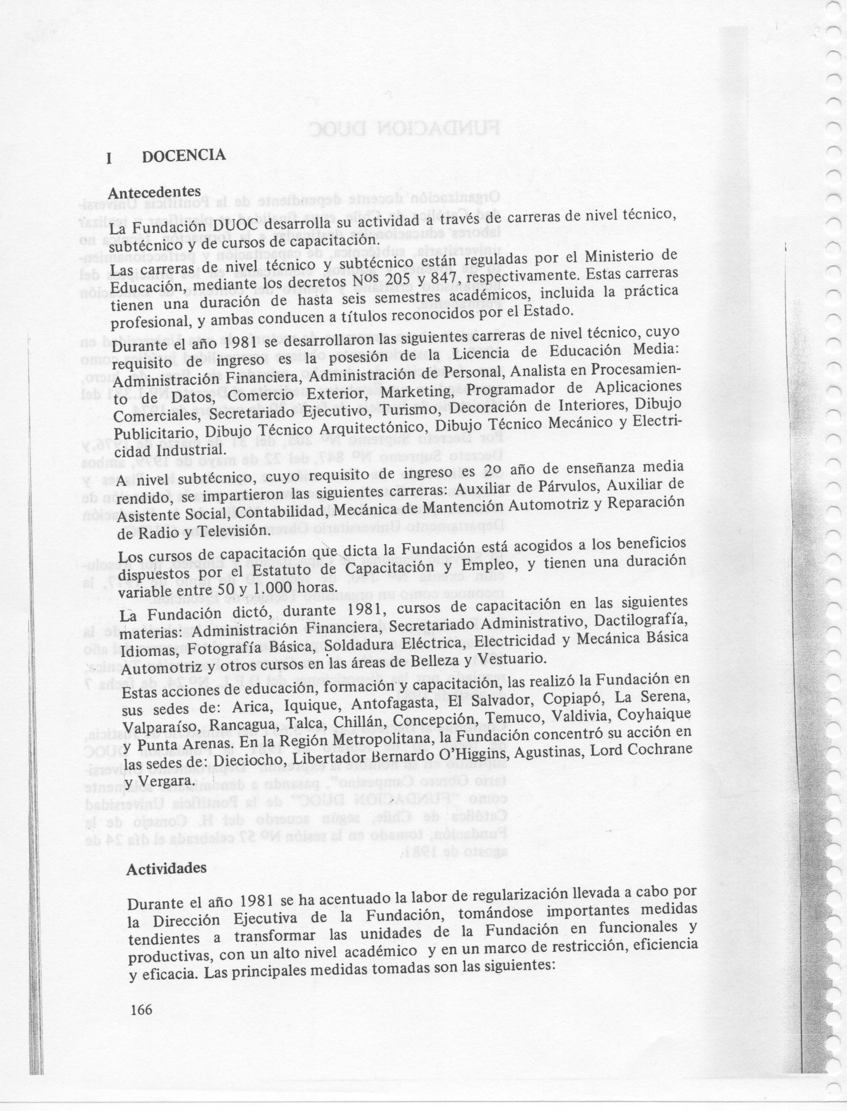 Cuenta Anual Rectoría Duoc UC A Pontificia Universidad Católica de Chile 1981-1982