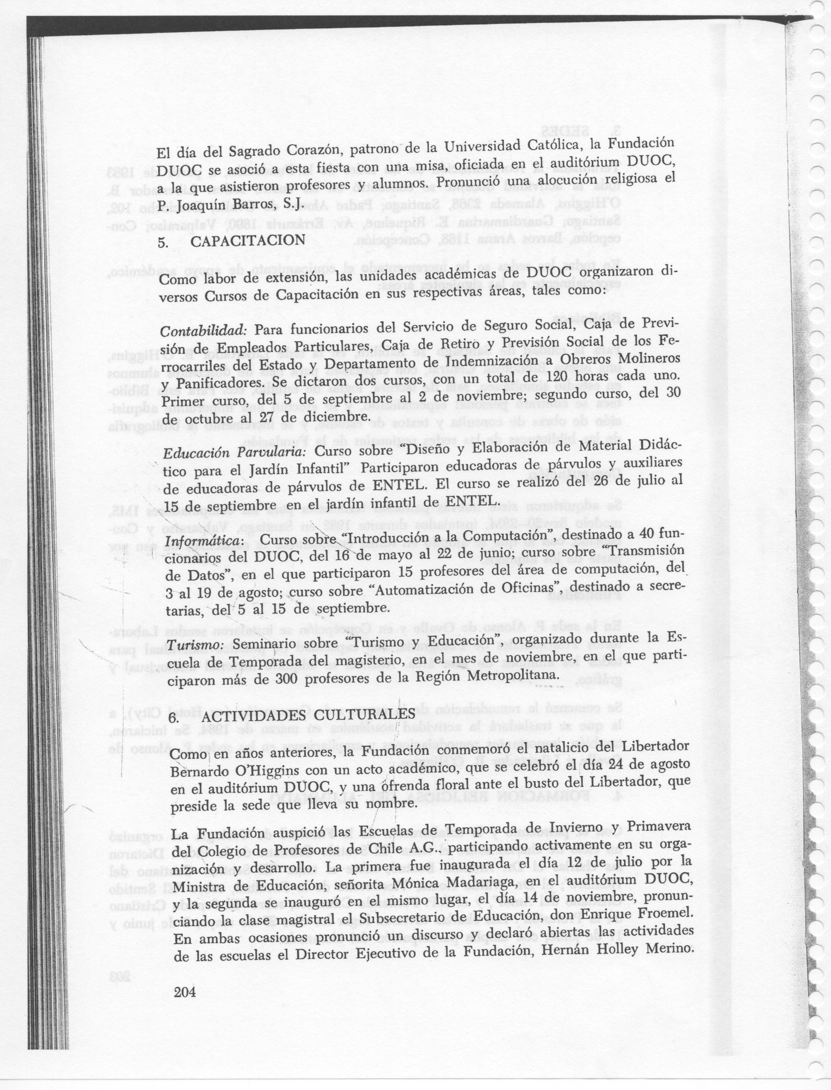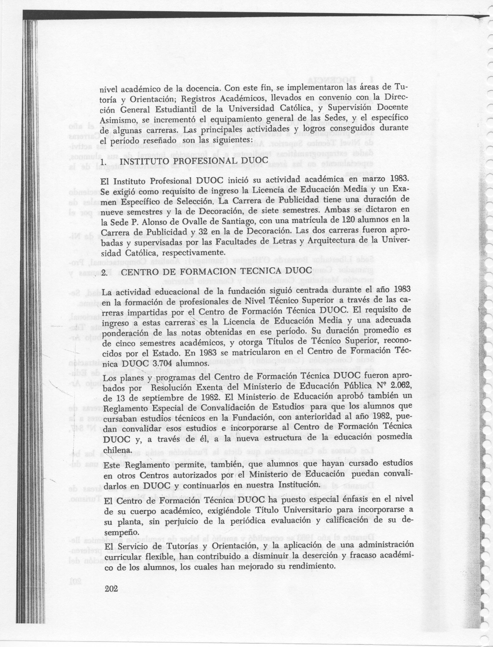 Cuenta Anual Rectoría Duoc UC A Pontificia Universidad Católica de Chile 1983-1984