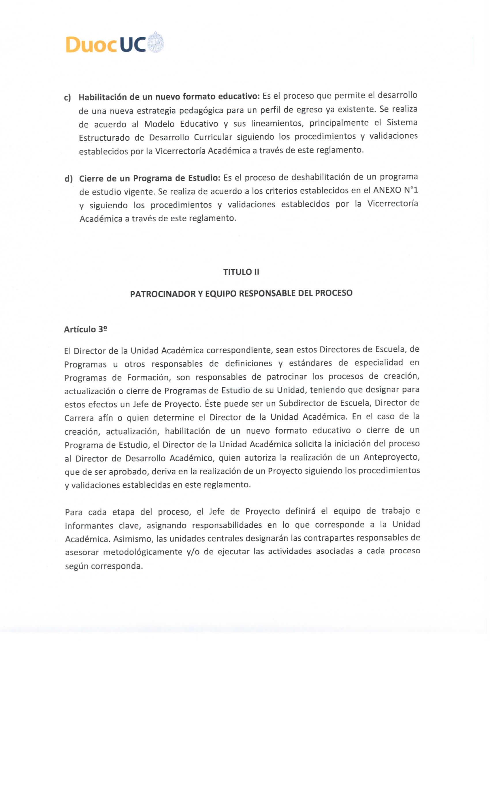 Apruébese el REGLAMENTO DEL PROCESO DE DESARROLLO CURRICULAR PARA LA CREACIÓN, ACTUALIZACIÓN Y CIERRE DE PROGRAMAS DE ESTUDIO deDuocUC,que tienecomofinnormarelprocesodeDesarrolloCurriculardelosProgramasdeEstudiodeDuoc UC.
