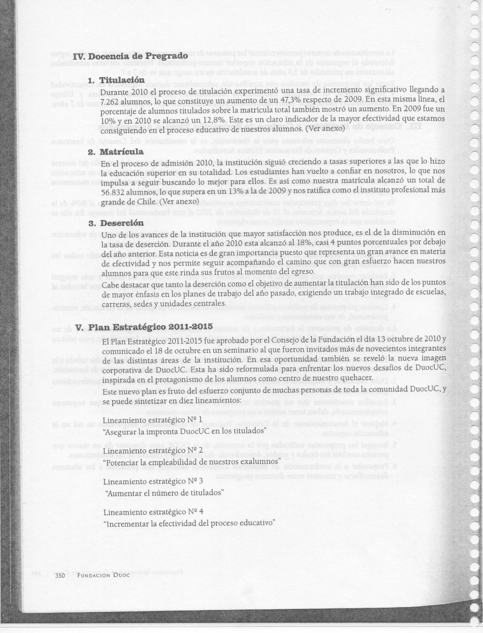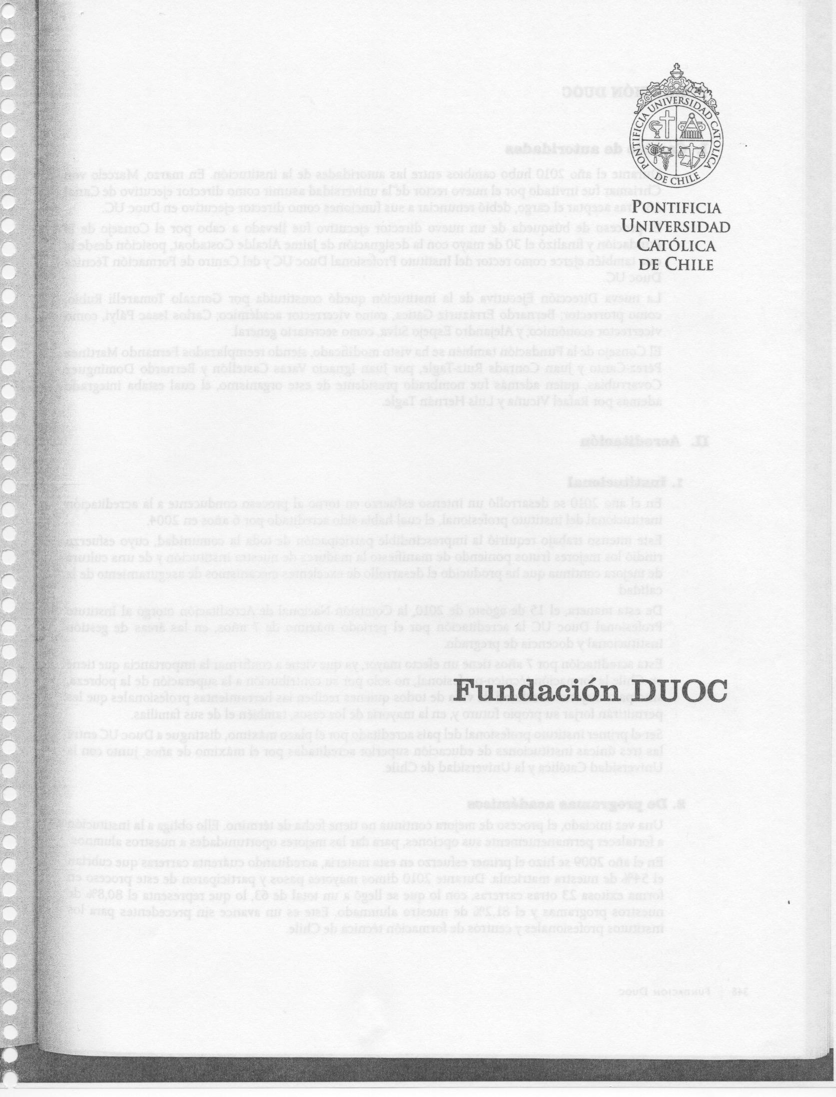 Cuenta Anual Duoc UC a la Pontificia Universidad Católica 2009-2010