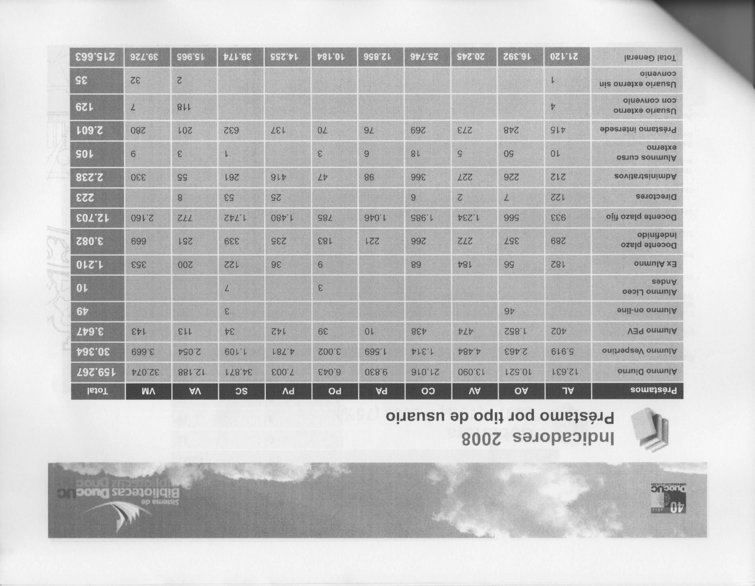Informe Bibliotecas Duoc UC, 2008.