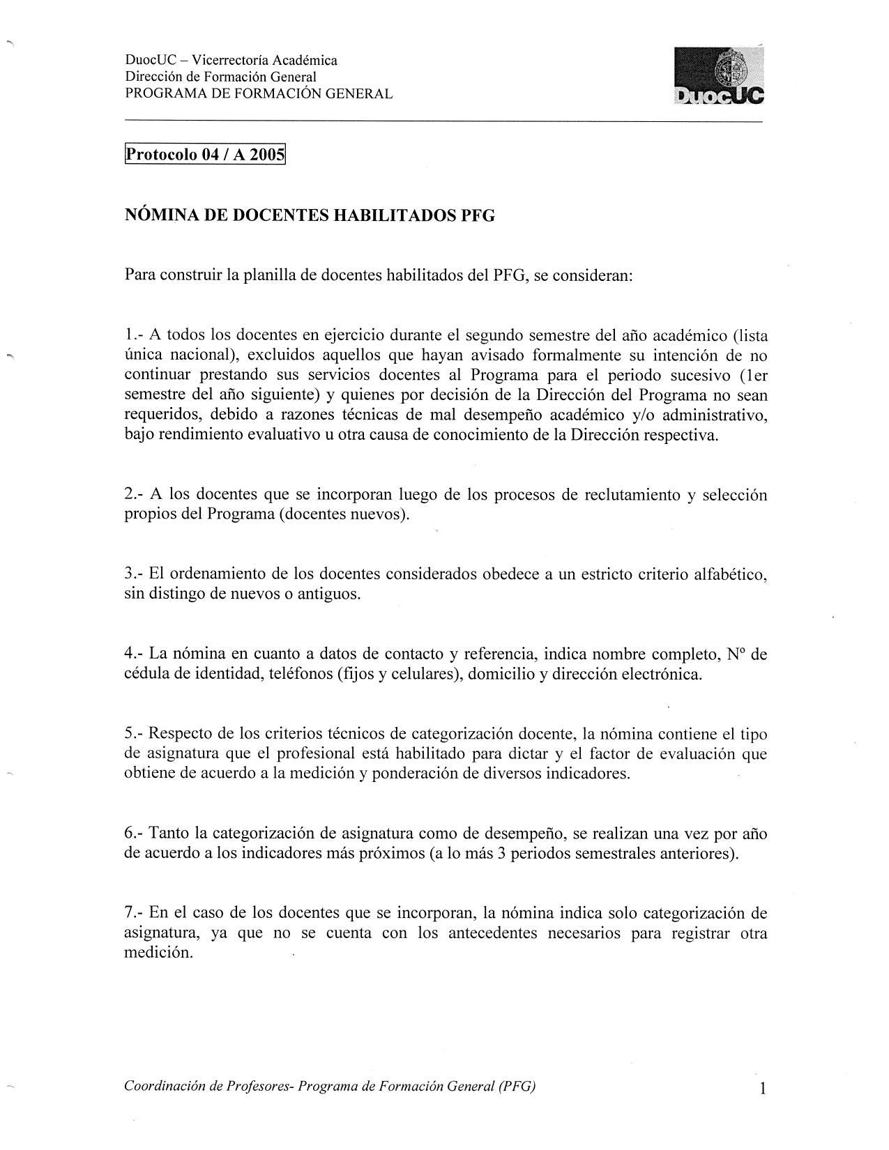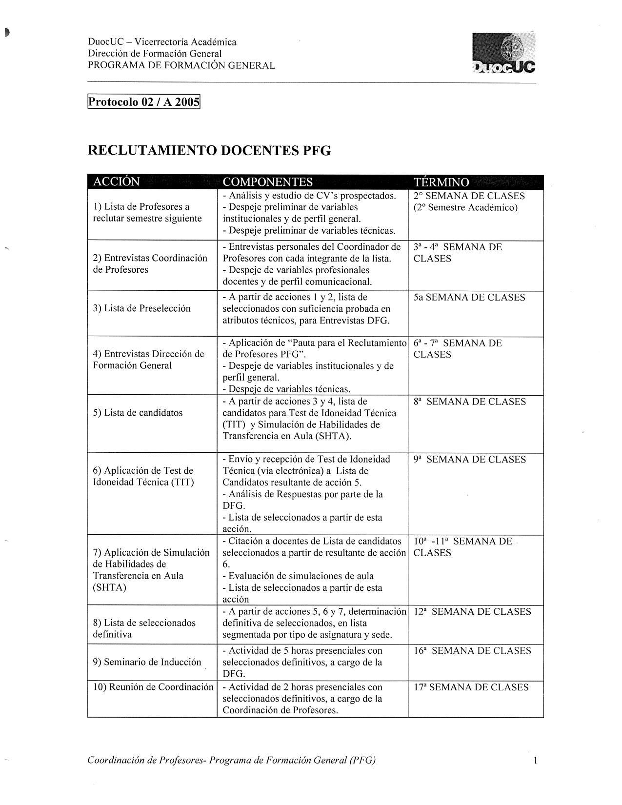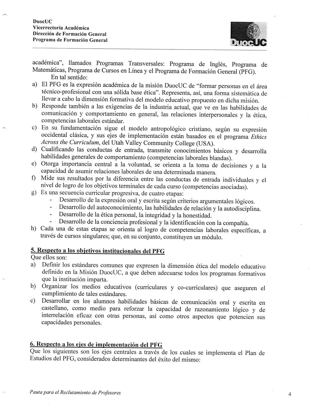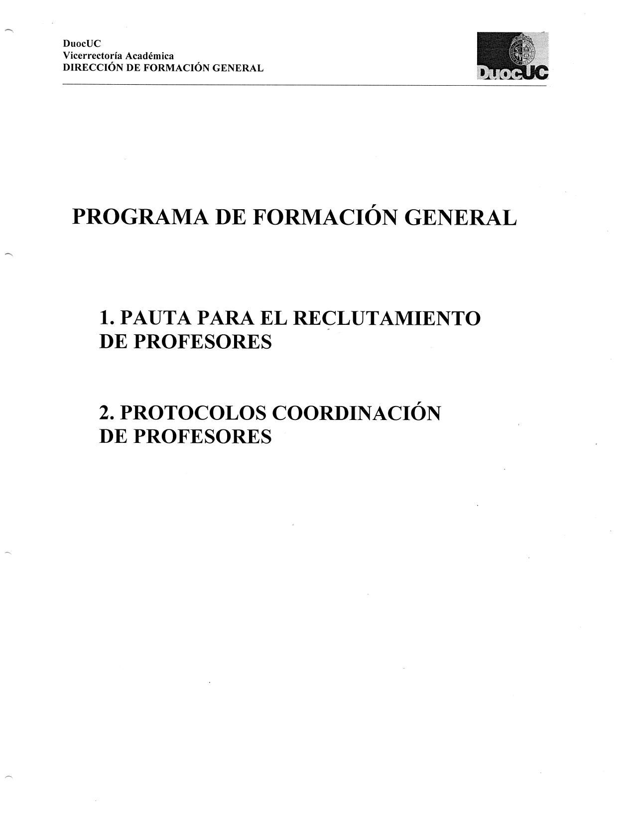 Programa de Formación General DUOC, pauta de reclutamiento de docentes, Abril 2005.