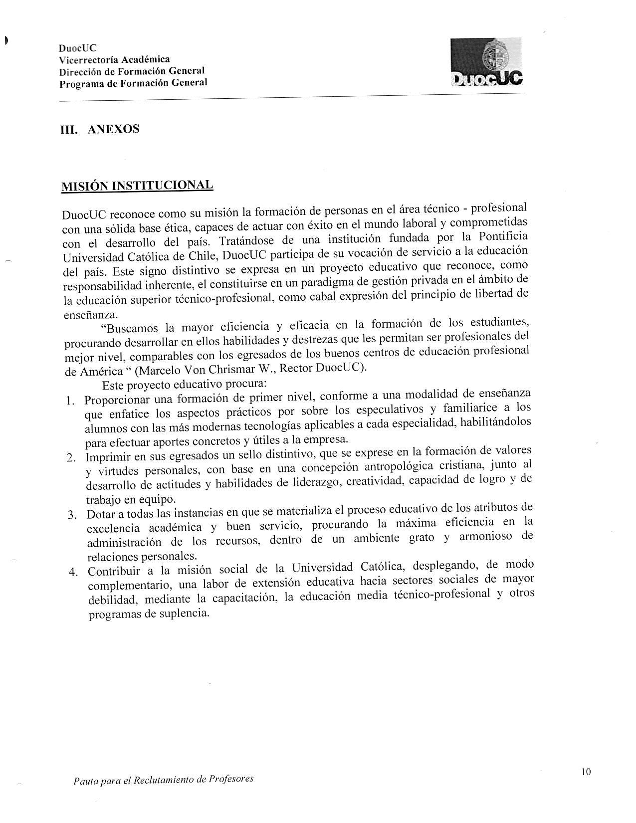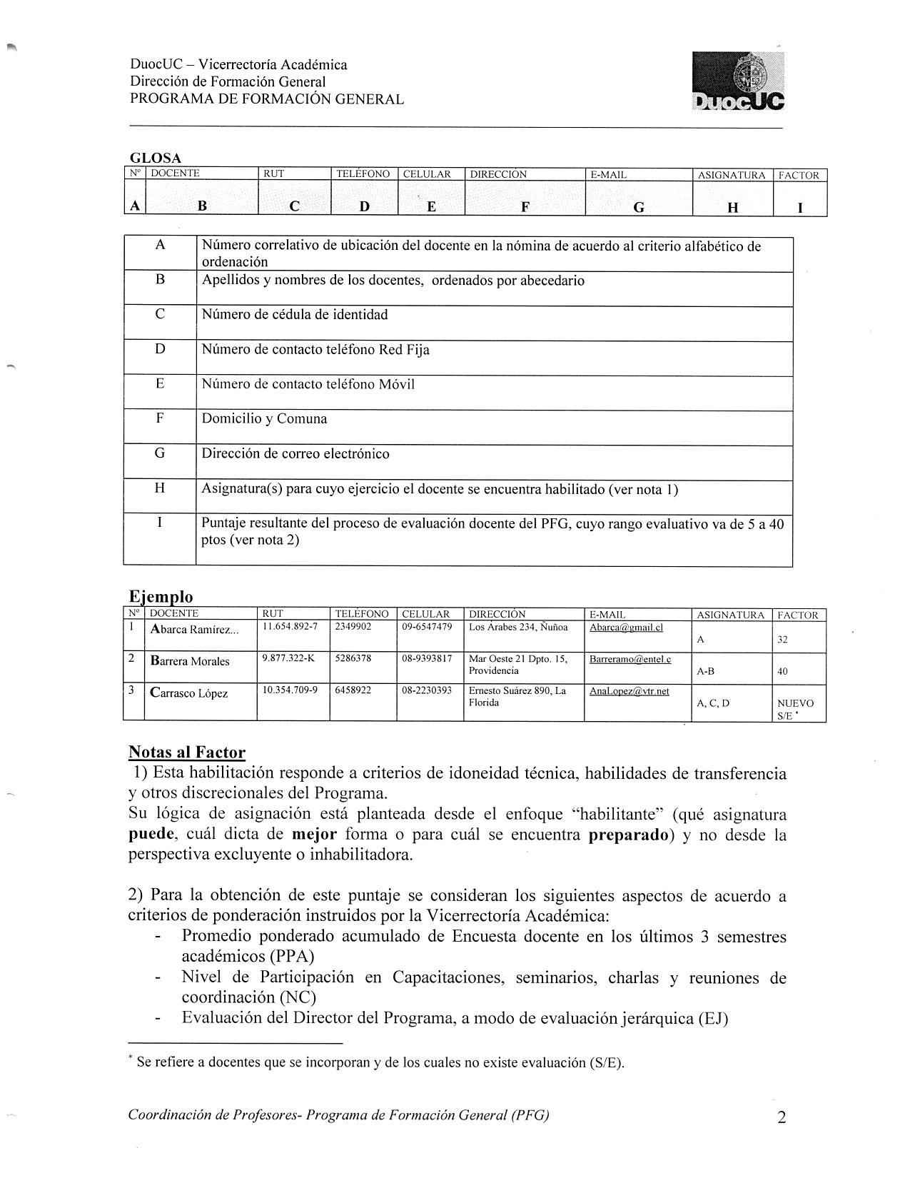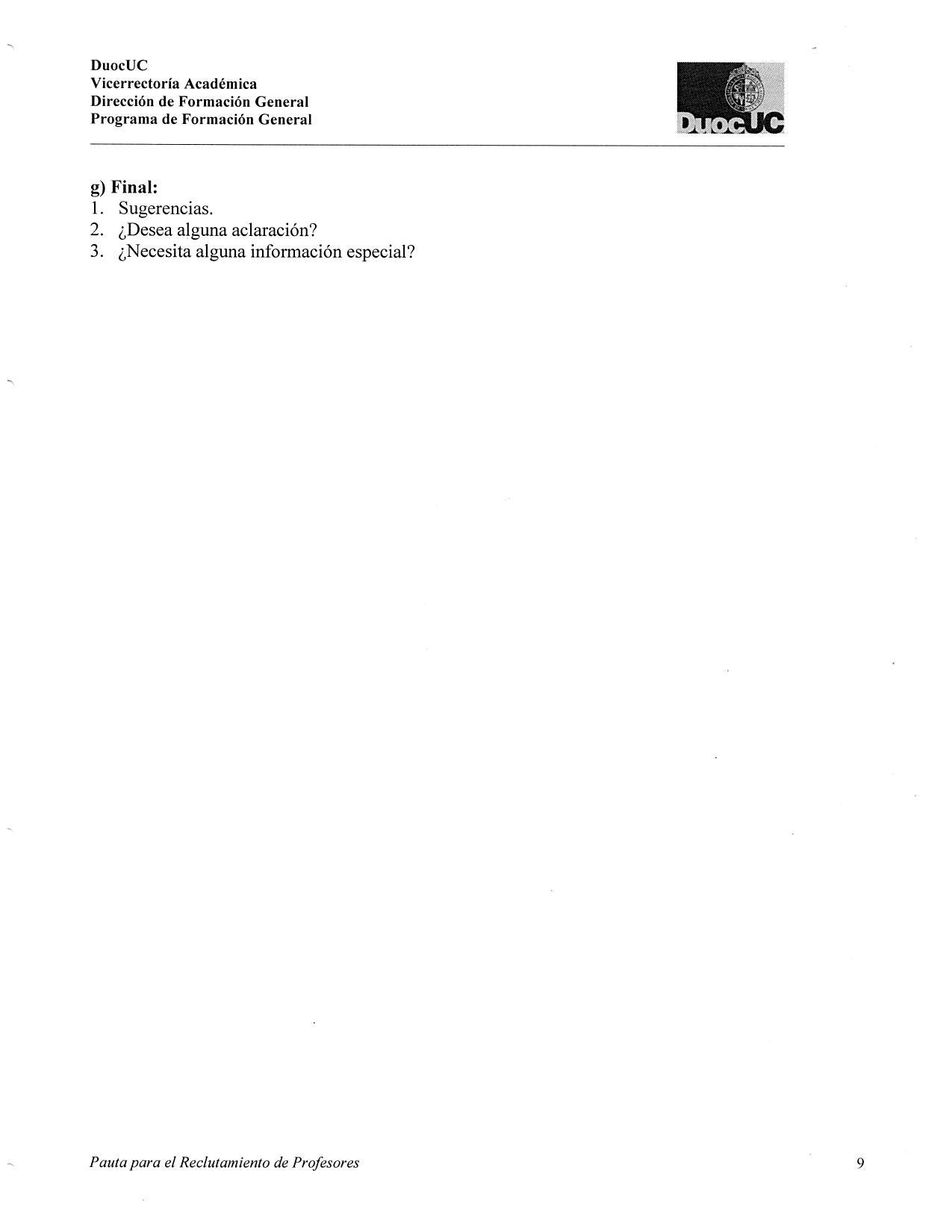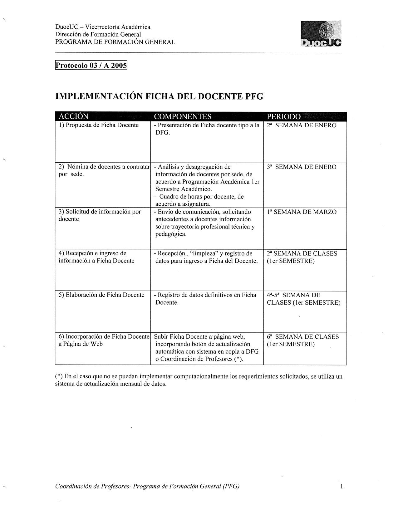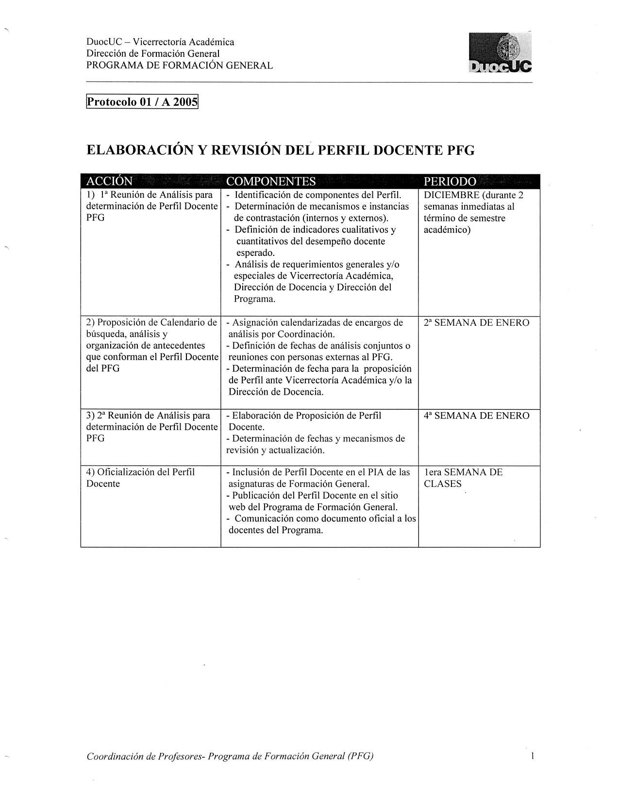 Programa de Formación General DUOC, pauta de reclutamiento de docentes, Abril 2005.