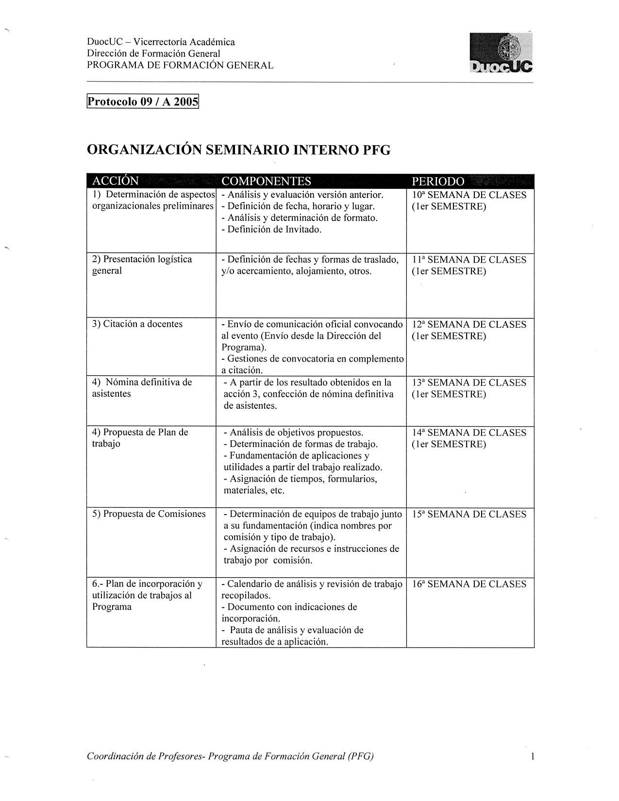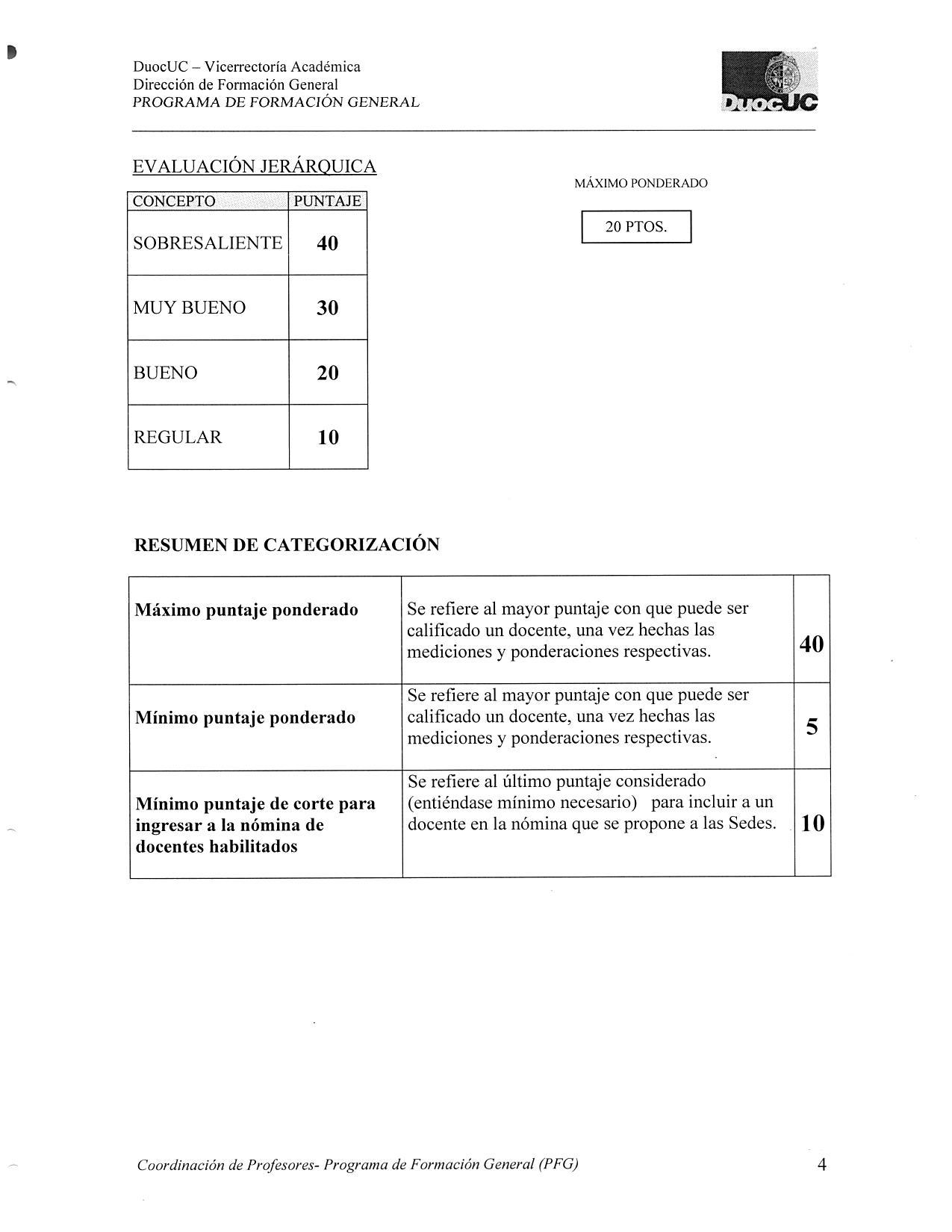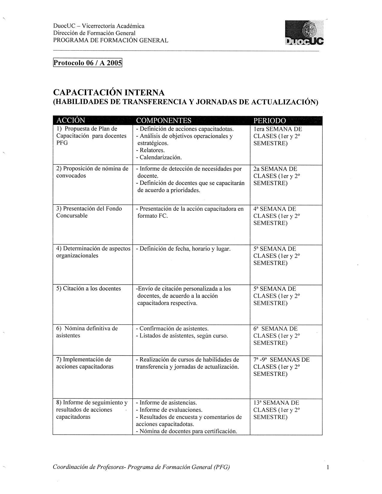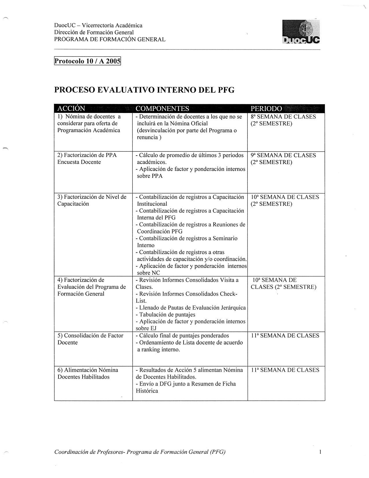 Programa de Formación General DUOC, pauta de reclutamiento de docentes, Abril 2005.