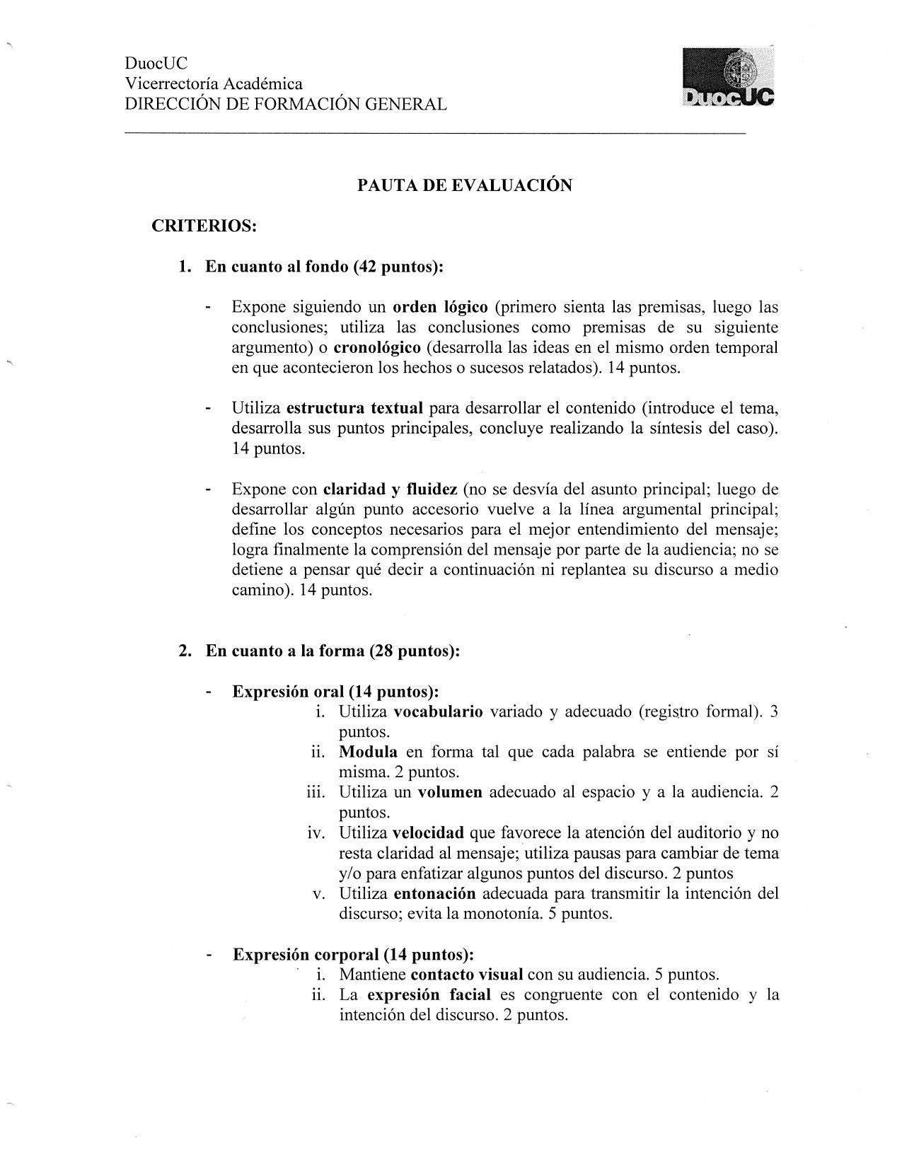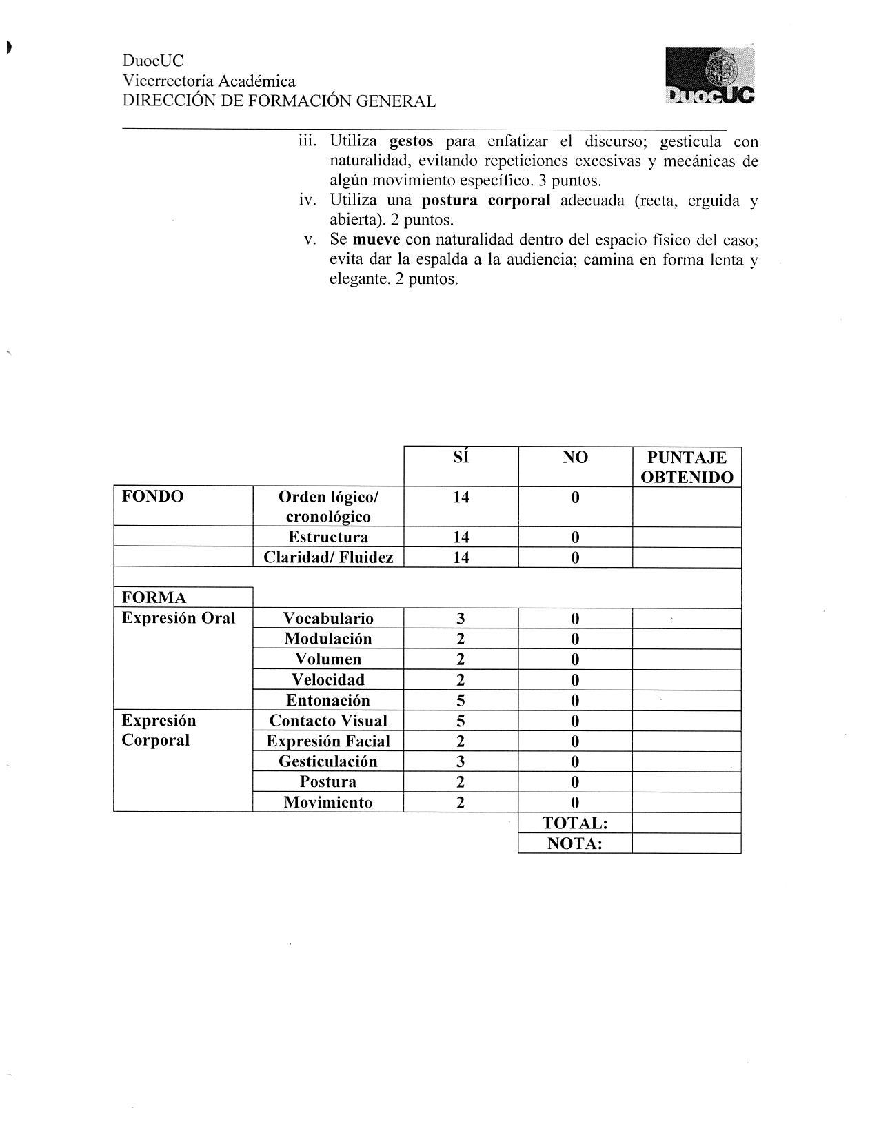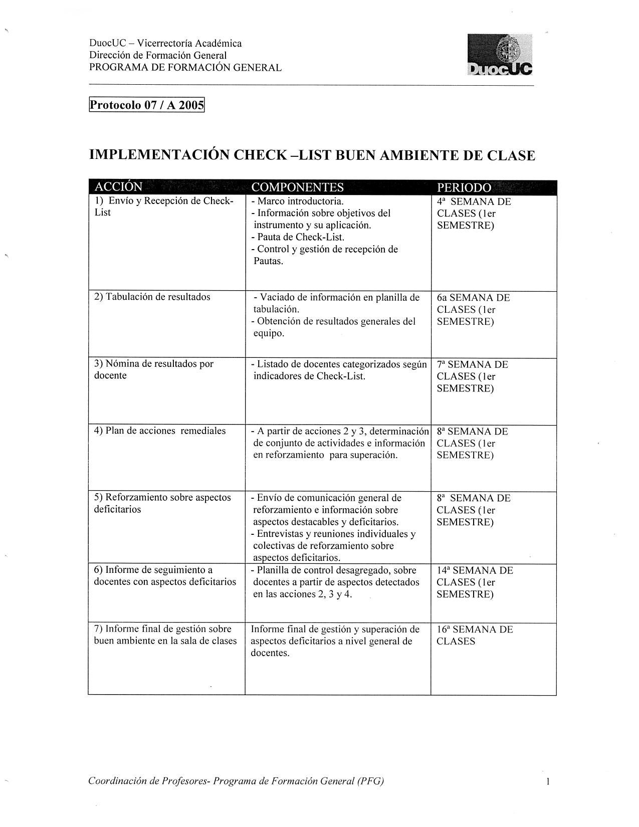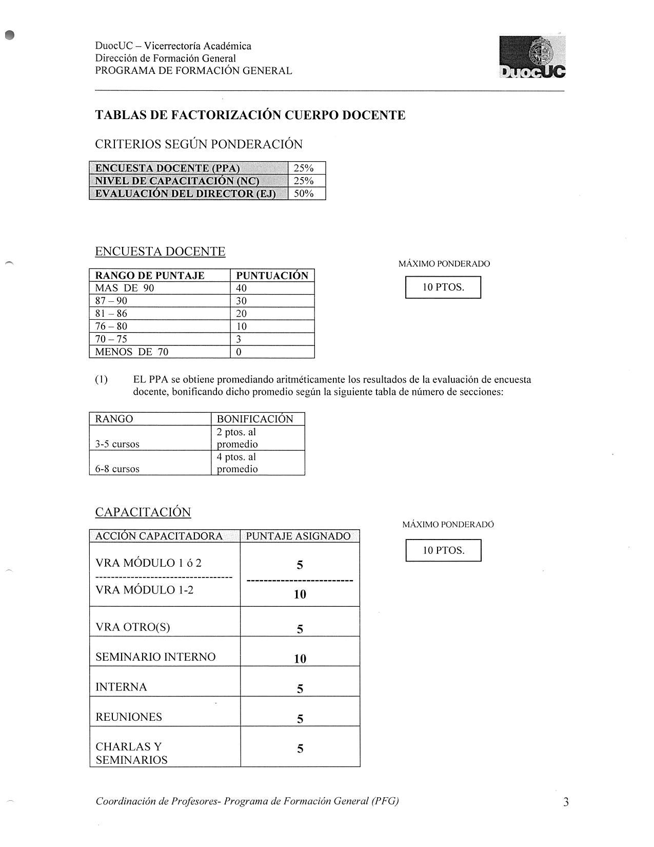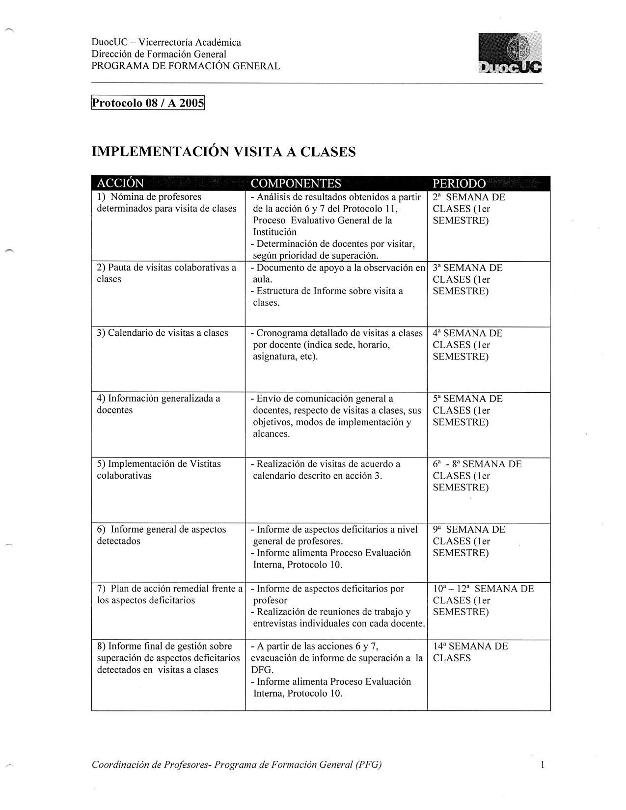 Programa de Formación General DUOC, pauta de reclutamiento de docentes, Abril 2005.