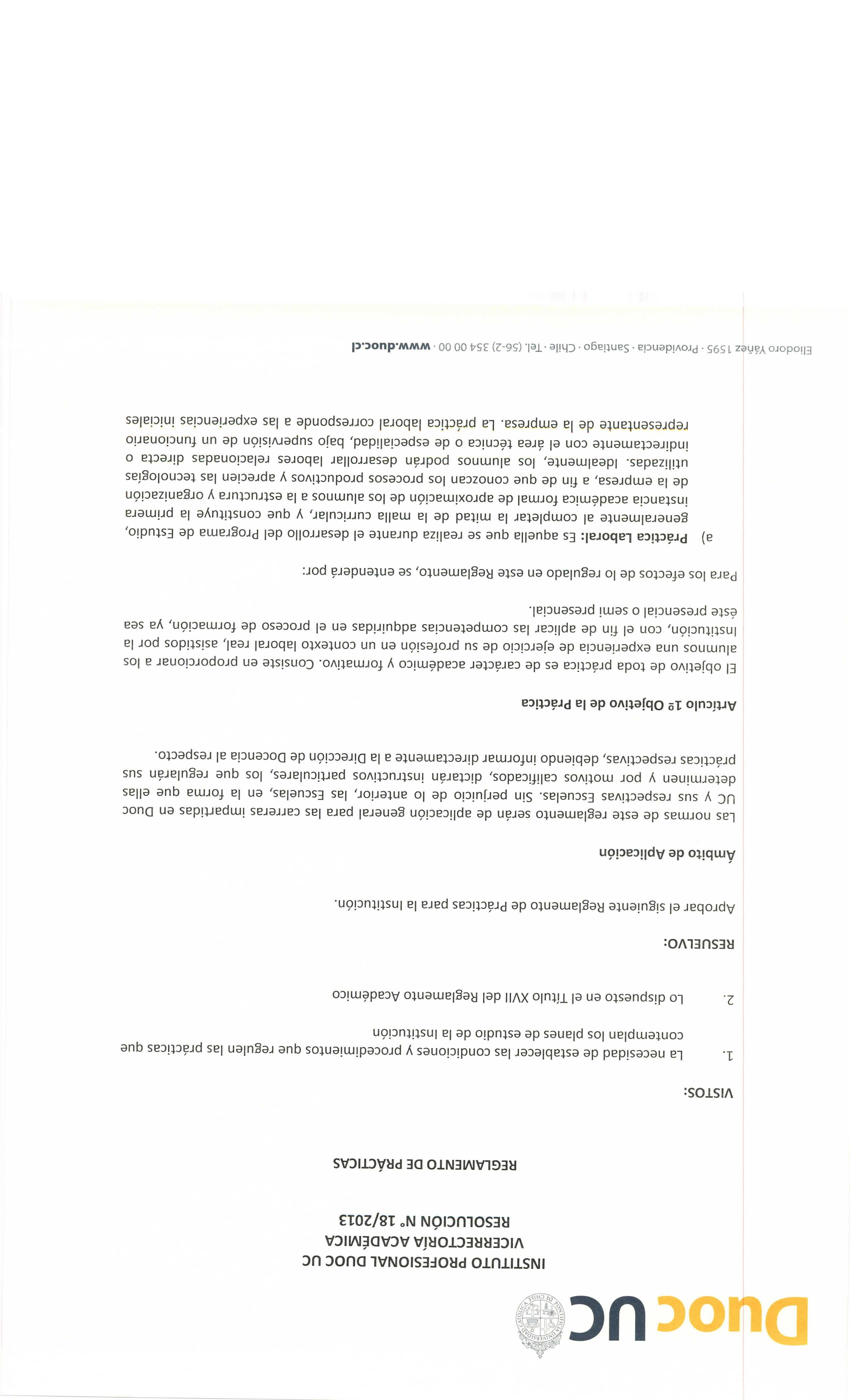 Las normas de este reglamento serán de aplicación general para las carreras impartidas en Duoc UC y sus respectivas Escuelas Sin perjuicio de lo anterior, las Escuelas, en la forma que ellas determinen y por motivos calificados, dictarán instructivos particulares, los que regularán sus prácticas respectivas, debiendo informar directamente a la Dirección de Docencia al respecto
